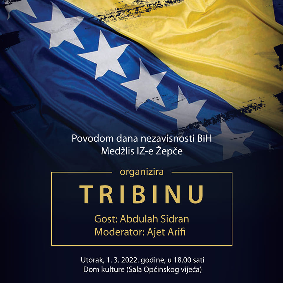 Tribina će biti organizovana u JU “Dom kulture” Žepče (sala Općinskog vijeća Žepče), u utorak 1. marta 2022. godine s početkom u 18 sati.