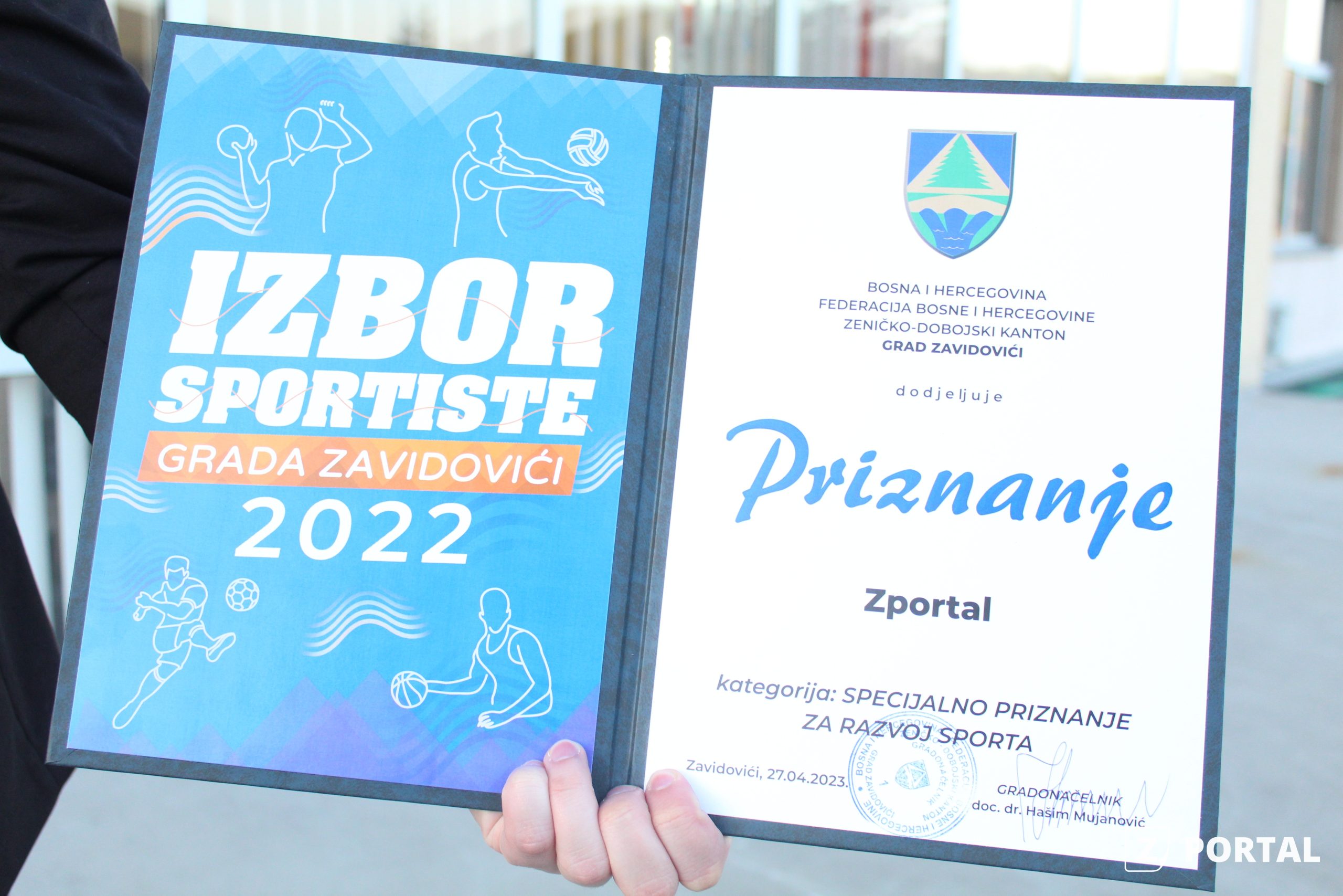 Spomenut ćemo da je na večerašnjoj manifestaciji i Z Portal dobio priznanje, a u kategoriji specijalnih priznanja za razvoj sporta. U ovoj kategoriji je priznanje također dobio Radenko Đurković, te KK Leopard i KK Mersad Kurtalić, te Savez za sport i rekreaciju invalida Zavidovići.