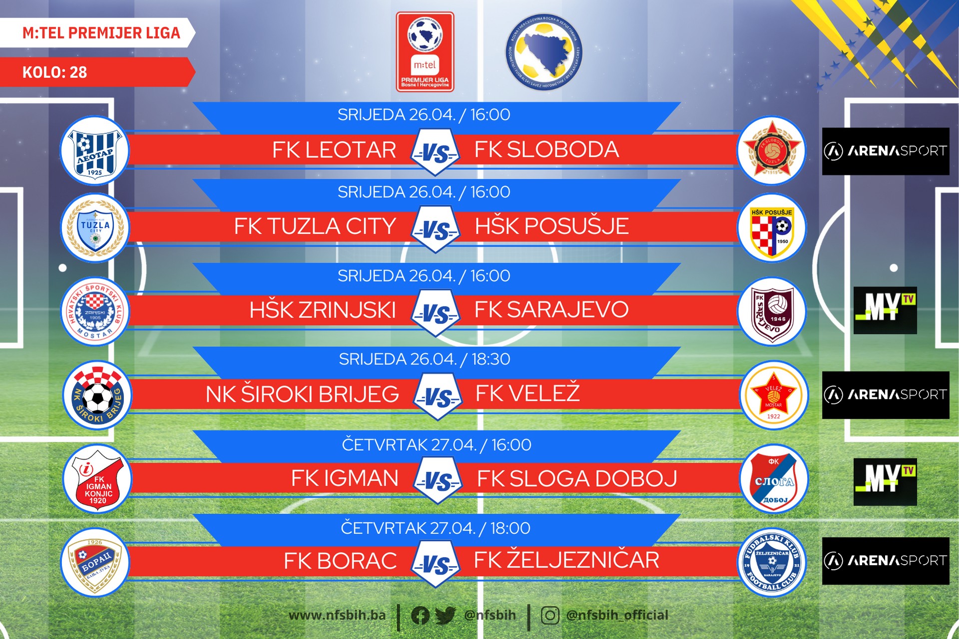 Danas i sutra će biti odigrane utakmice 28. takmičarskog kola m:tel Premijer lige BiH u fudbalu, a ekipa Zrinjskog ima priliku da ovjeri titulu prvaka.
