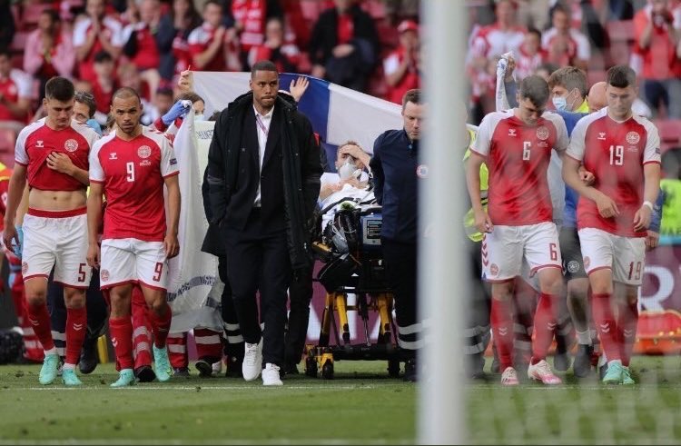 Poslije jedne akcije svoje ekipe Eriksen se srušio i nepomično ostao da leži na terenu, a čemu nije prethodio nikakav kontakt s protivničkim igračima.