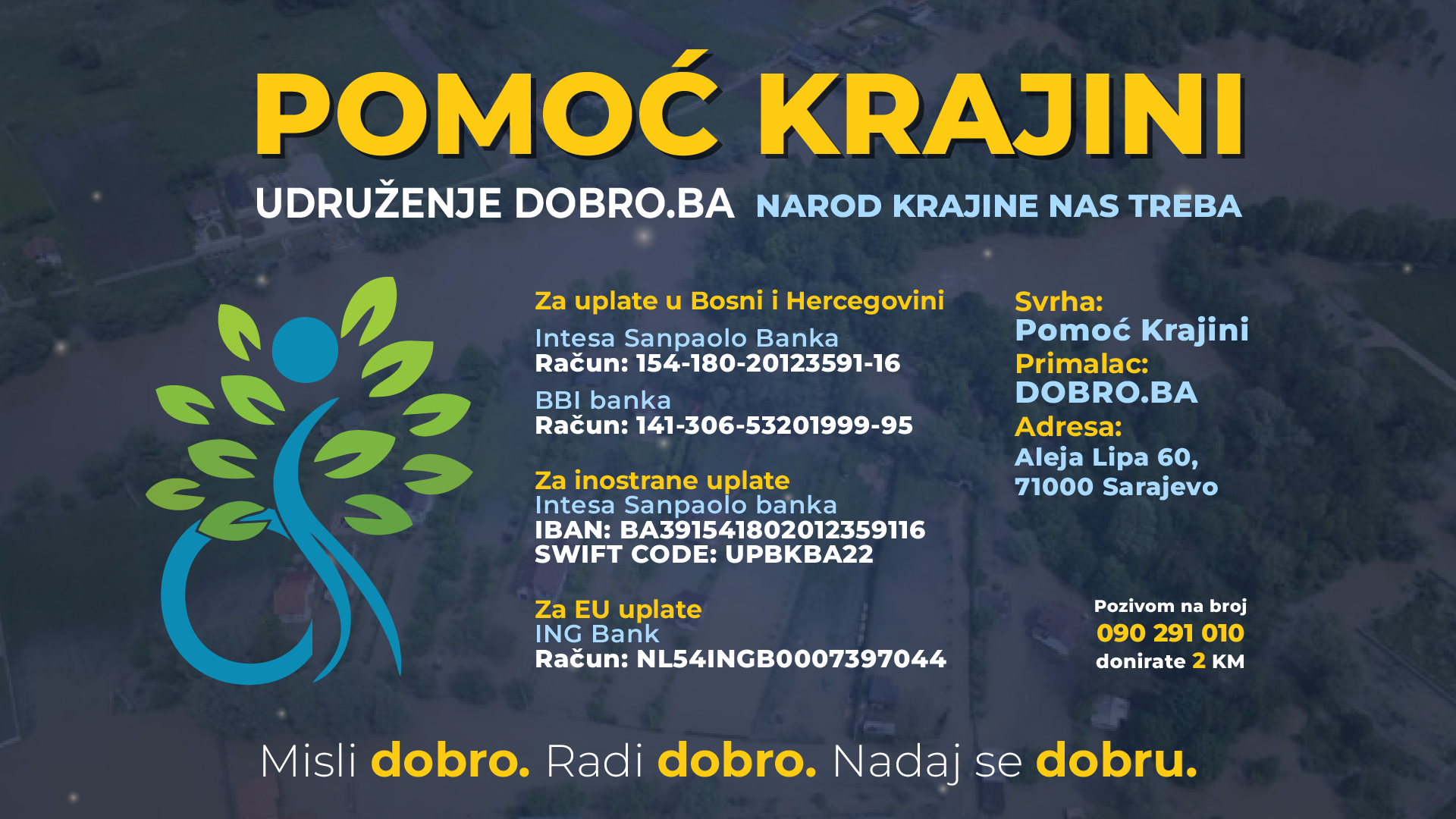 Humanitarno udruženje DOBRO.BA pokrenulo je akciju pomoći stanovništvu Krajine koje je u prethodnim danima pogođeno velikim poplavama, a što je prouzrokovalo ogromnu materijalnu štetu te ostavilo brojne objekte pod vodom.