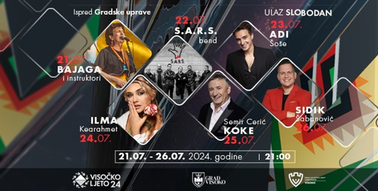 Ovogodišnja manifestacija “Visočko ljeto 2024”, koja će trajati od 21. do 26. jula, u Visoko dovodi poznata imena domaće i