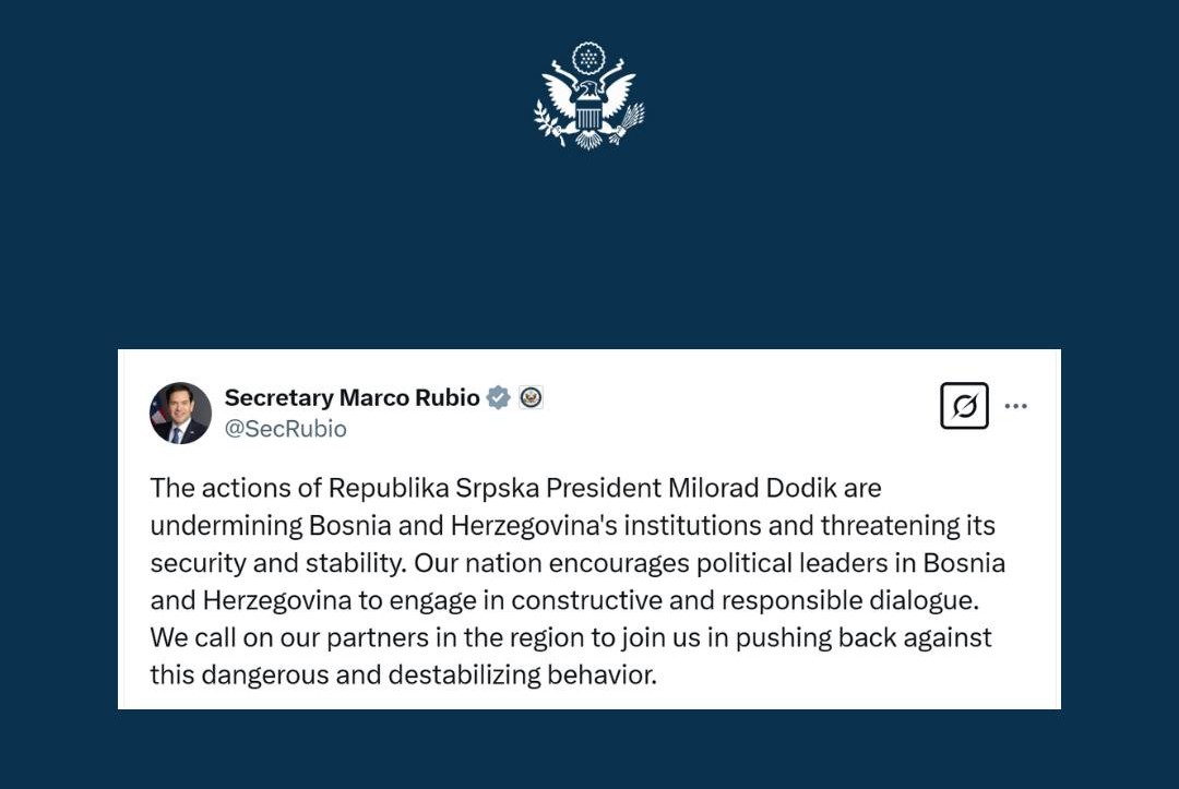Rano jutros po našem vremenu putem društvene mreže X oglasio se državni sekreter Sjedinjenih Američkih Država (SAD) Marco Rubio koji