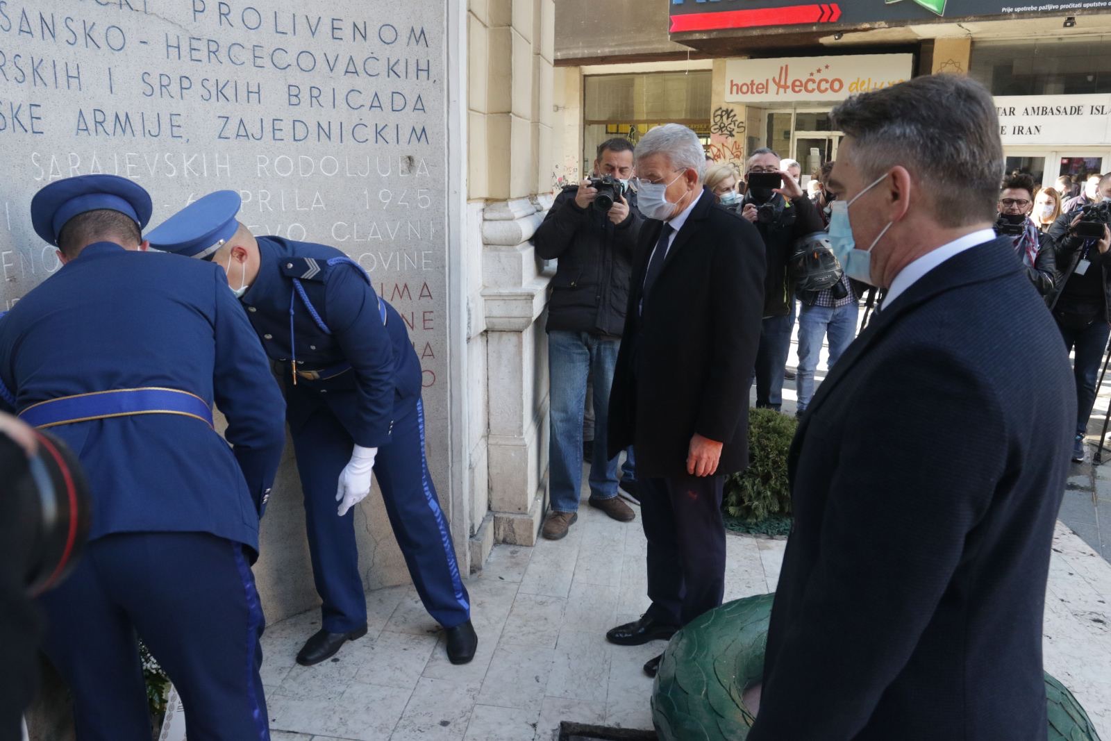 “Mislim da na današnji dan ipak trebamo razgovarati o drugim temama kao što je taj antifašistički duh Sarajeva koji se iskazao i u Drugom svjetskom ratu i tokom agresije gdje je Sarajevo pokazalo da nije grad kukavica te da je uvijek imalo i hrabrosti da se odupre svima onima koji su nosili civilizacijsko zlo. Mi smo to osjećali na svojoj koži, ali to nije bilo upereno samo protiv nas nego protiv cijelog sistema vrijednosti slobodnog čovjeka, ali nisu u tome uspjeli“, kazao je Žejko Komšić.