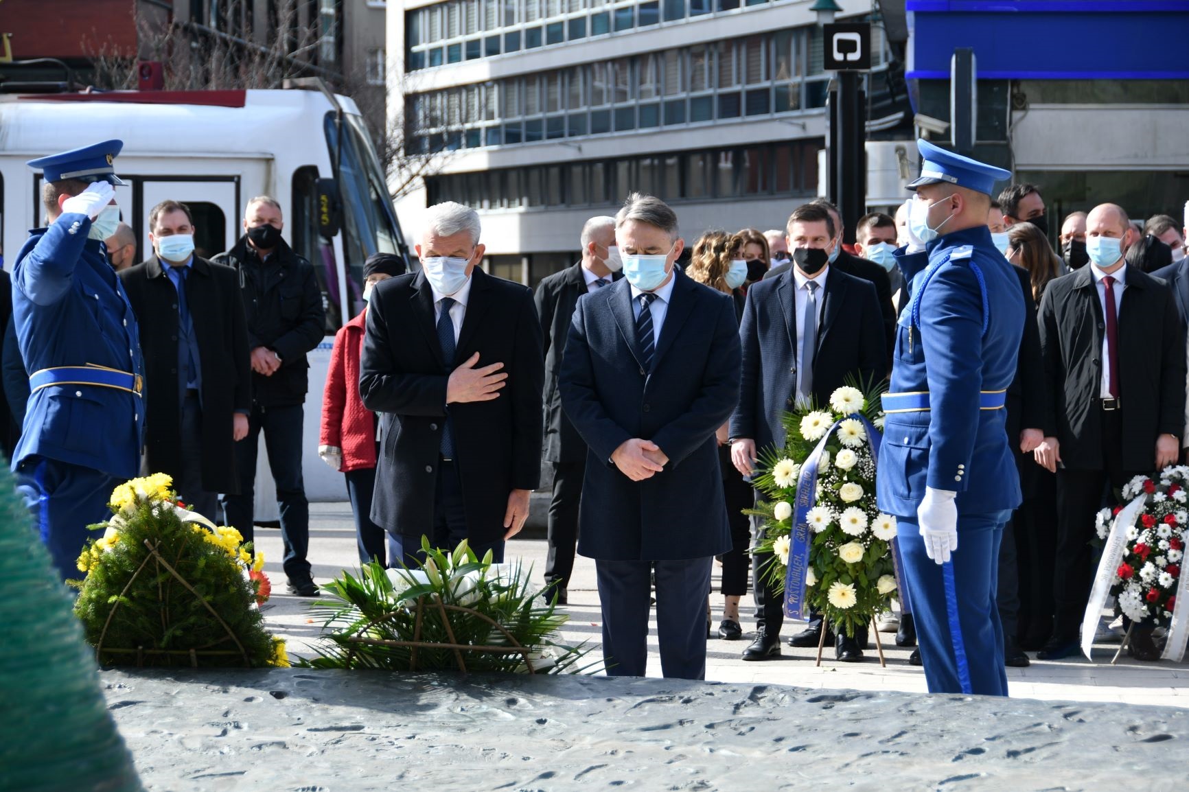 Šefik Džaferović i Željko Komšić, članovi Predsjedništva BiH, obilježili su Dan grada Sarajeva odavanjem počasti na Vječnoj vatri, mezarju Kovači, spomen obilježju ubijenoj djeci Sarajeva i na spomen obilježju Vraca.