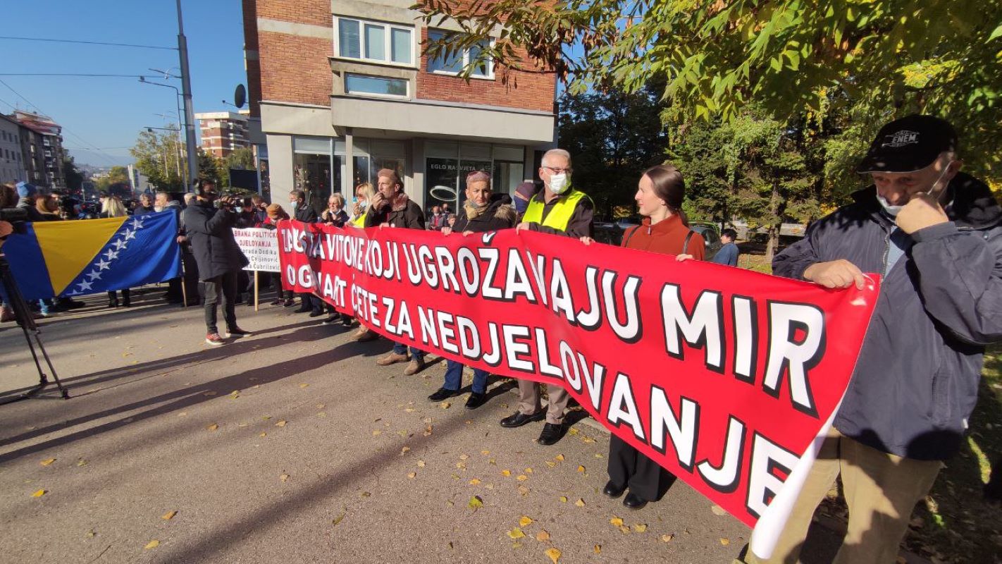 Zahtijevamo da visoki predstavnik Christian Schmidt u koordinaciji sa EU i SAD odlučno i hitno reaguje povodom aktuelne krizne situacije u zemlji. Da preuzme odgovornost i dužnosti koje ima po svome mandatu, te da koristi sve mehanizme OHR-a u svrhu rješavanja trenutne i budućih kriza, uključujući Bonske ovlasti i zabrane djelovanja političkih aktera u BiH”, poručili su su organizatori Sejda Čavćić i Suad Đozić.