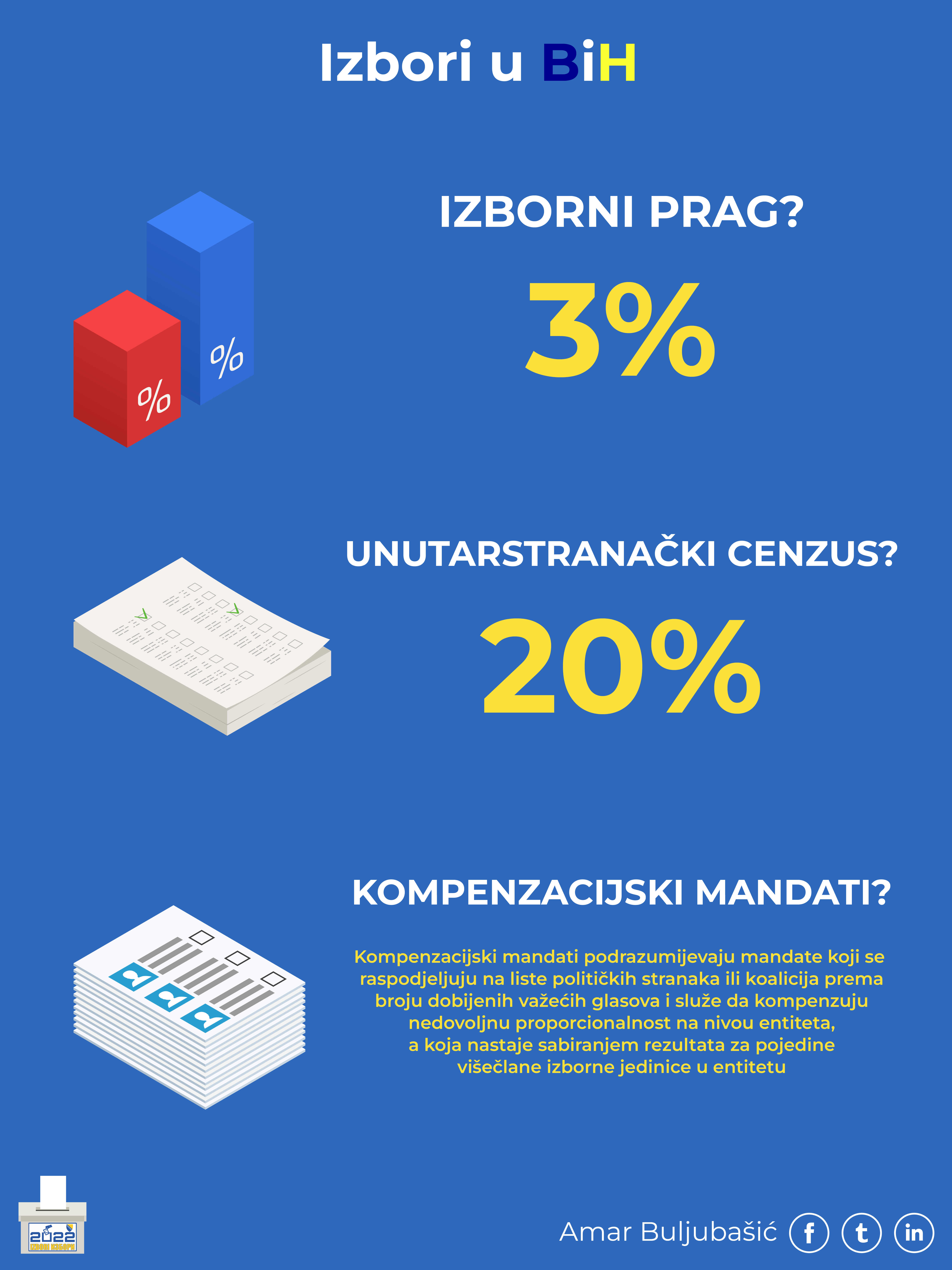Iz tog razloga ovaj tekst za cilj ima da pojasni ključne elemente našeg sistema, poput izbornih jedinica, direktnog i indirektnog izbora predstavnika zakonodavne vlasti, izbornog praga, unutarstranačkog cenzusa ili kompenzacijskih mandata.