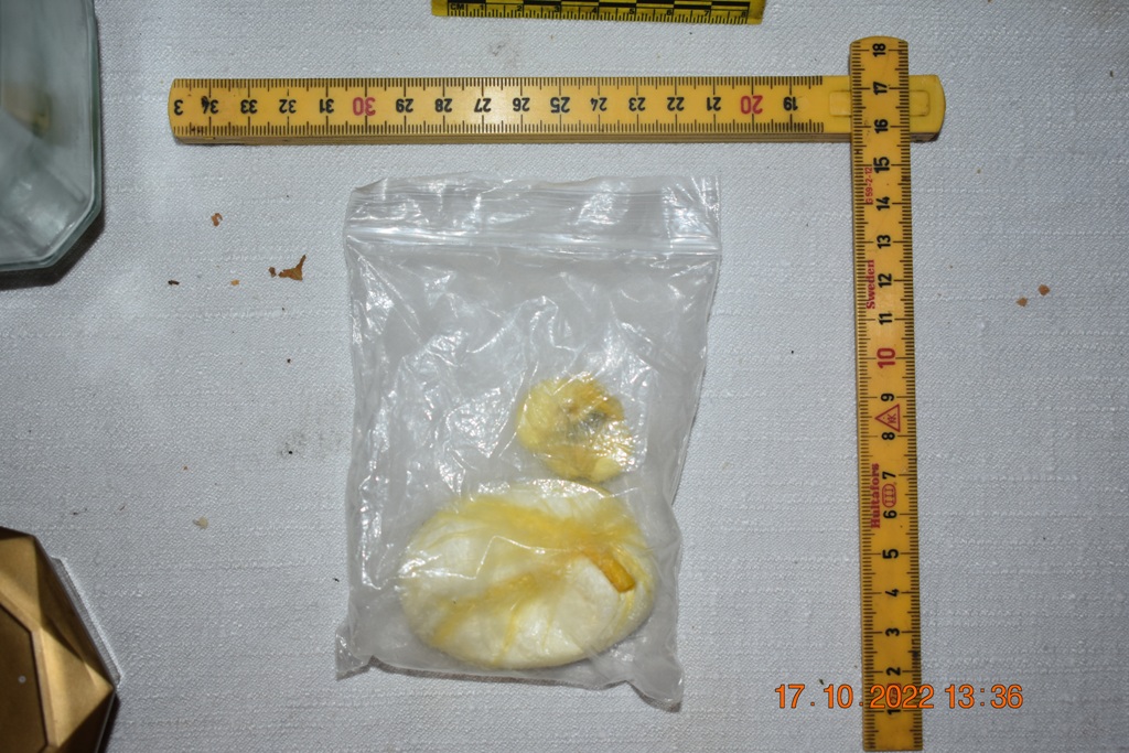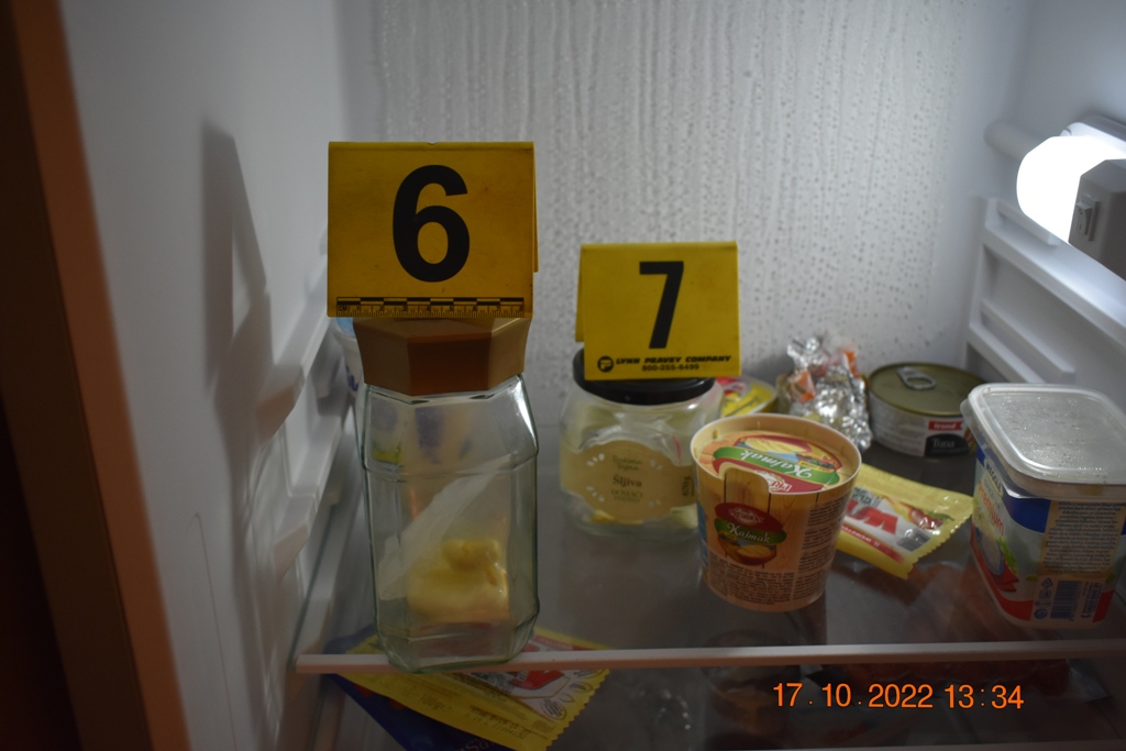 Sporna materija je fotografisana, izuzeta i bit će predmet potrebnih vještačenja, te će biti korištena kao dokazni materijal u daljnjem postupku. Prilikom pretresa lice B.E. je lišeno slobode i nad istim je zavedena kriminalistička obrada, zbog postojanja osnova sumnje da je počinilo krivično djelo “Neovlaštena proizvodnja i stavljanje u promet opojnih droga” iz člana 238. Krivičnog zakona Federacije BiH.