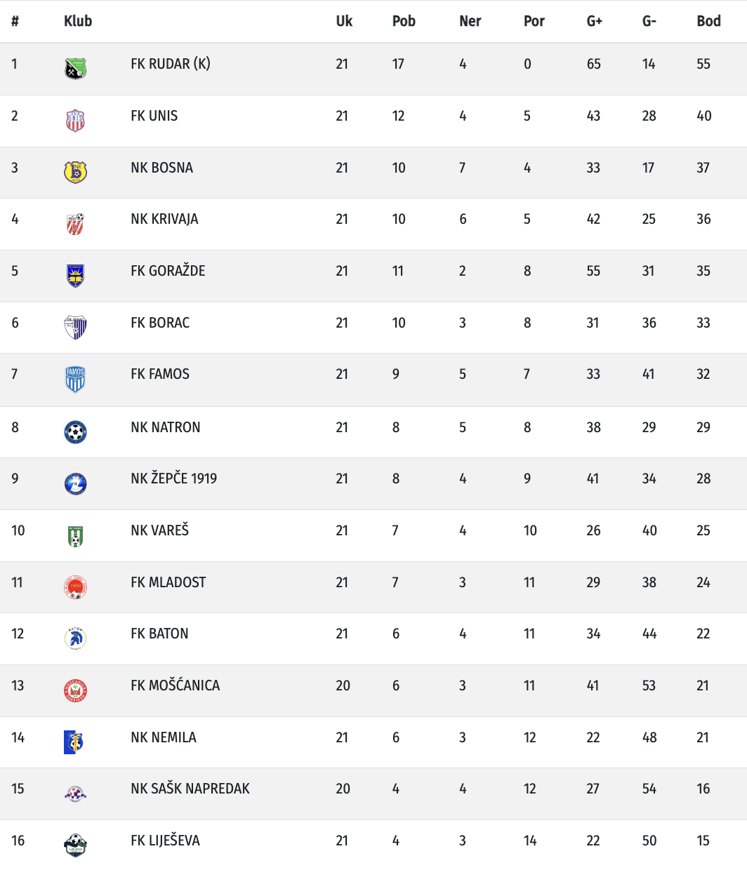 Nogometaši Natrona poraženi su jučer u Goraždu, a domaća ekipa je pobijedila rezultatom 4:1. Iako su gosti iz Maglaja poveli pogotkom Emelina Hasanbašića, Goražda je stiglo do ubjedljive pobjede zahvaljujući golovima Dejana Jolovića, Ammara Đuderije, Vernesa Islamagića i Nermina Mašića.