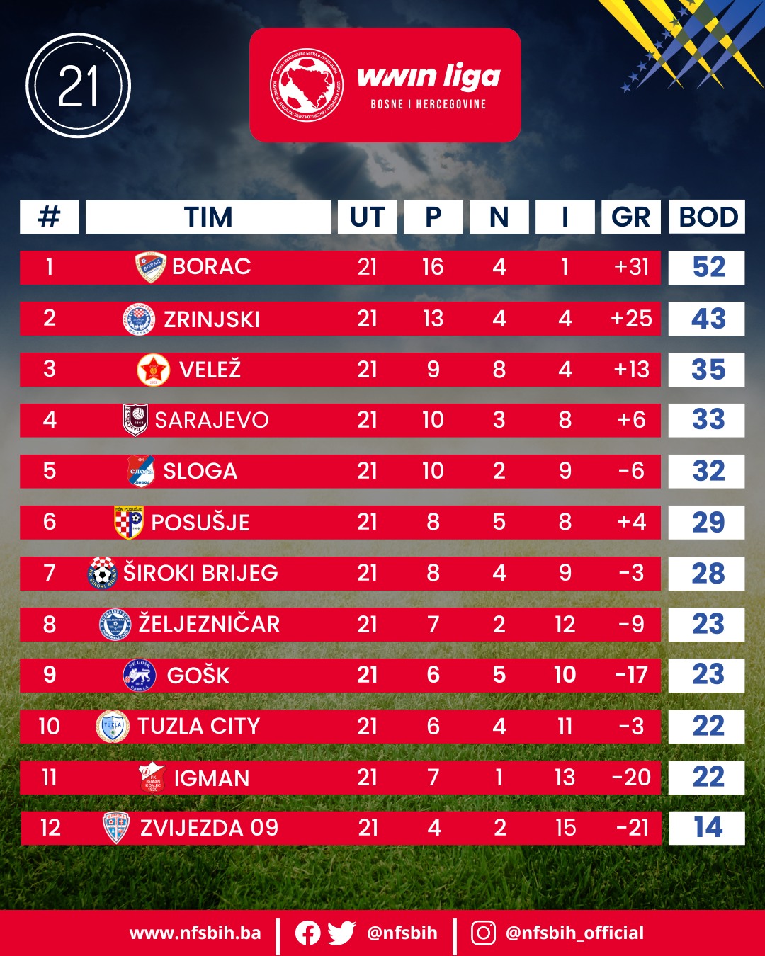 Danas je odigrana posljednja utakmica 21. kola Wwin lige BiH, a u kome su puno više uspjeha ostvarile domaće ekipe.