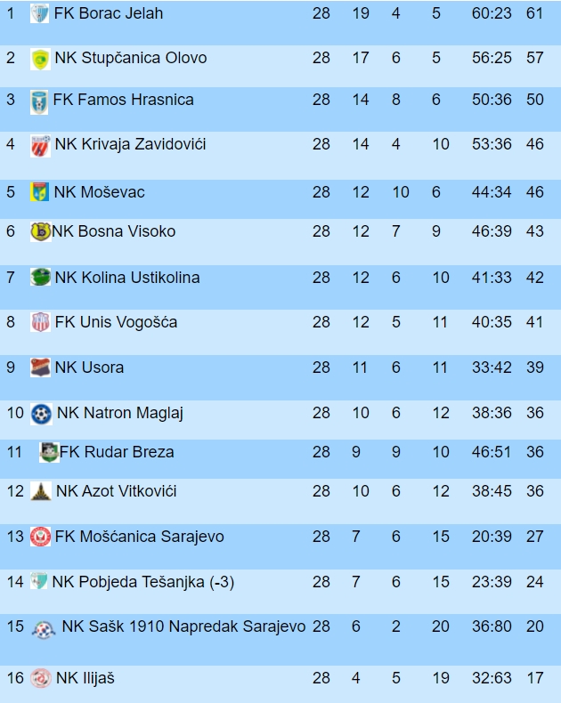 Nasuprot Krivaje bit će ekipa Borca koja pobjedom u ovom susretu može ovjeriti prvo mjesto na tabeli. Od ranije je poznato da će ekipa iz Jelaha učestvovati u doigravanju za plasman u Prvu ligu FBiH, no za očekivati je da će Borac pokušati i sezonu završiti na prvom mjestu ligaške tabele.