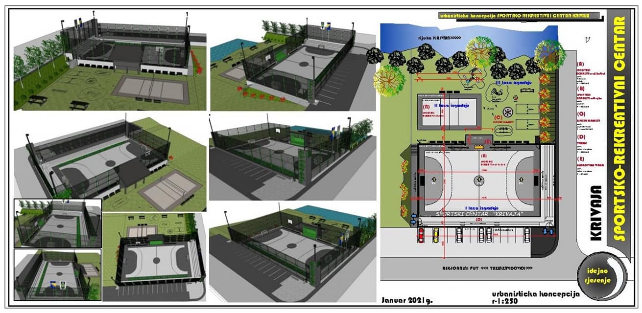Sportsko rekreativni centar u Krivaji bi bio izgrađen preko puta obližnje džamije (kod mosta), a u svom sastavu bi imao raznoliki sadržaj i predstavljao bi jedno svojevrsnu izletišnu atrakciju s dječjim parkom, klupama za odmor, roštiljima, poligonom za nogomet, košarku i drugim mogućnostima.