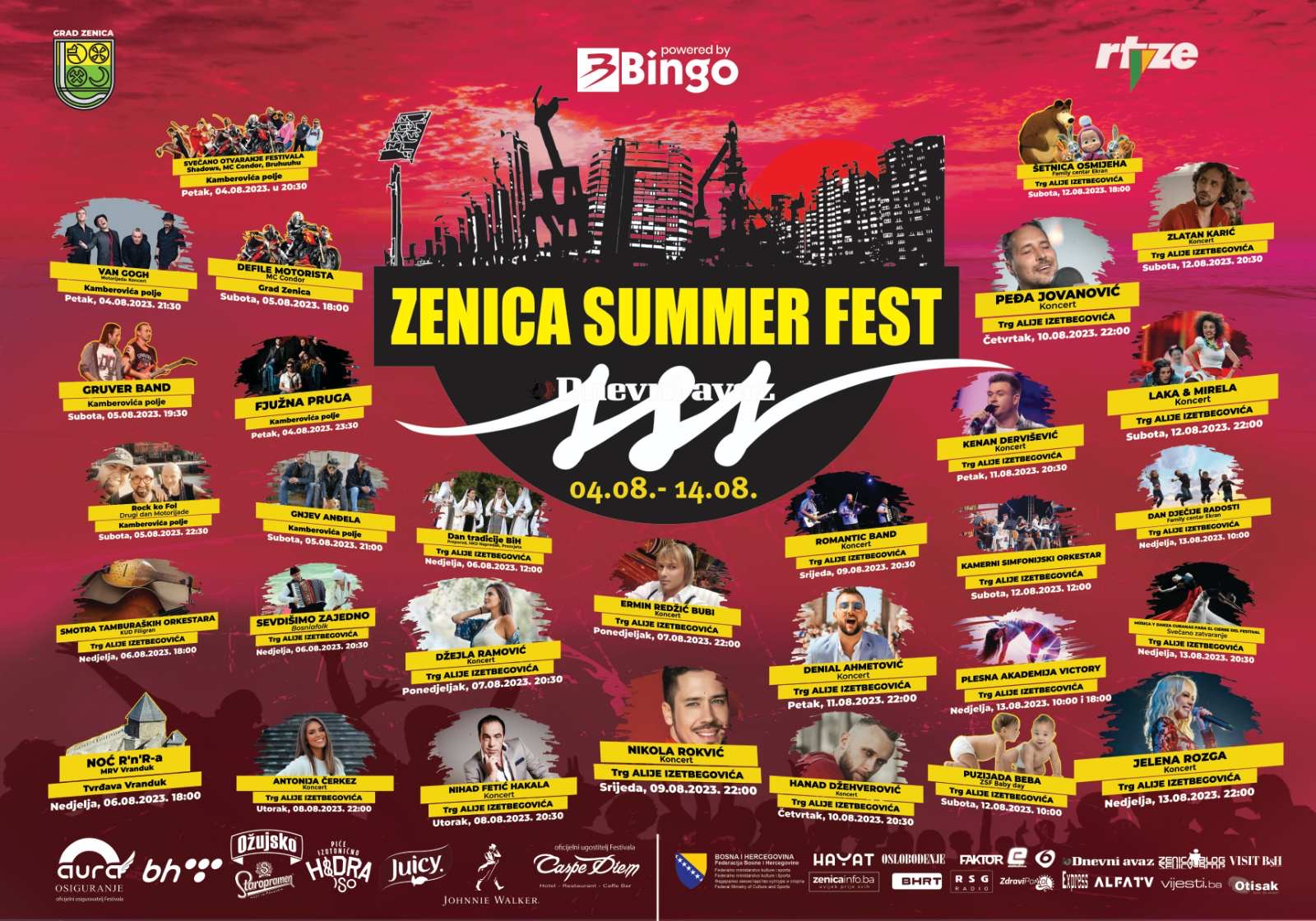 Zenica Summer Fest powered by BINGO, u organizaciji Gradske uprave Zenica i tehničkoj realizaciji Javnog preduzeća Radio-televizija Zenica
