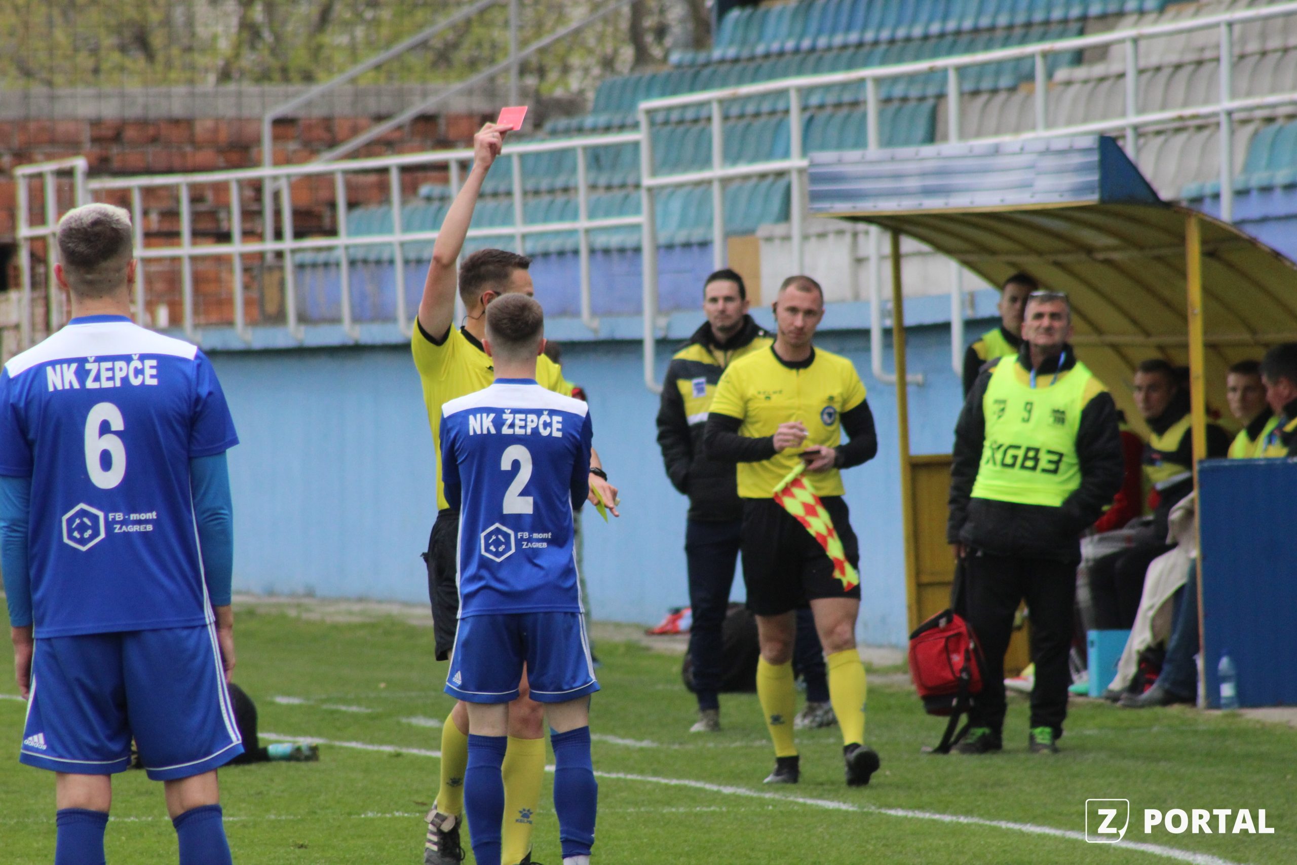 I nakon perioda ujednačene igre, situacija se pogoršala po domaći tim. Igrala se 25. minuta kada Ahmed Badnjar u razmaku od nekoliko sekundi dobija dva žuta kartona, prvi zbog prekršaja, a potom i zbog šutiranja lopte tokom prekida, te Žepče ostaje sa 10 igrača.