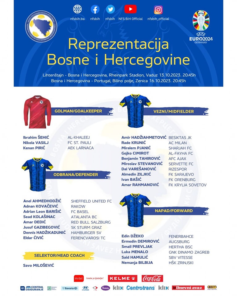 Neposredno nakon press konferencije Nogometnog/Fudbalskog saveza Bosne i Hercegovine, a na kojoj je zvanično predstavljen Savo Milošević kao selektor reprezentacije naše zemlje, objavljen je i spisak reprezentativaca za predstojeće okupljanje.