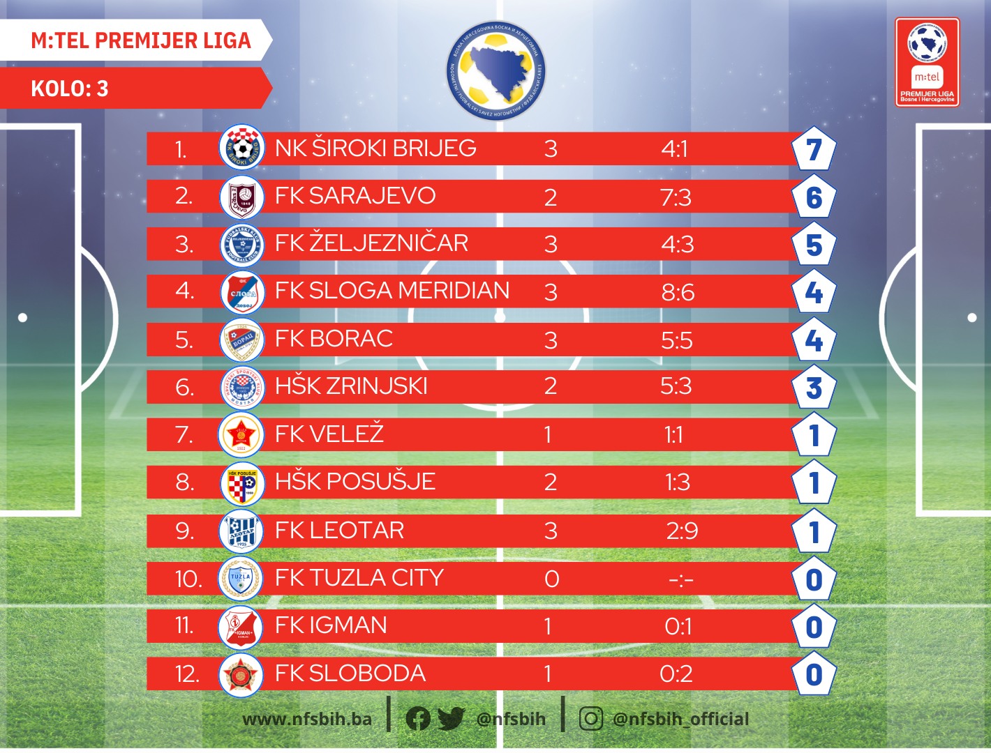 U ovom kolu su bili odloženi susreti Igman – Tuzla City i Sloboda – Velež.