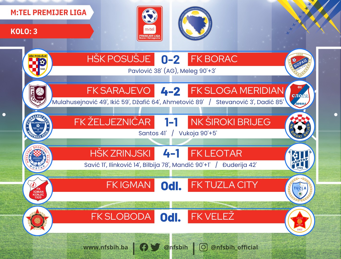 Odigrane četiri utakmice 3. kola Premijer lige BiH