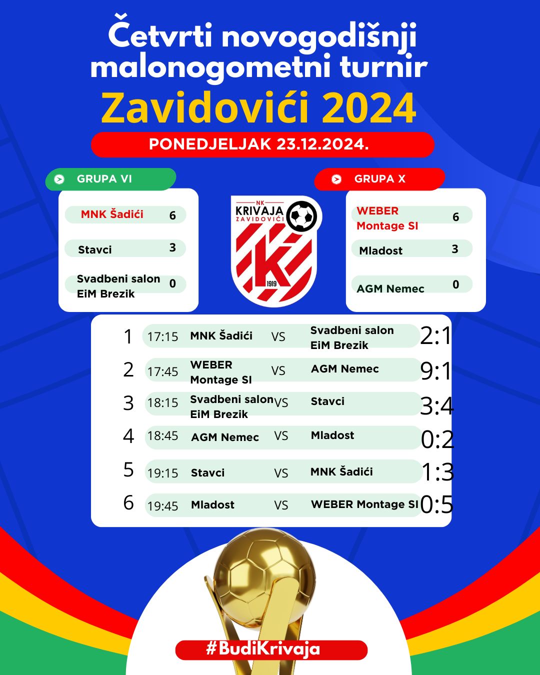 Na programu su bile utakmice u grupama VI i X, a dalje su sa po dvije uvjerljive pobjede prošle ekipe MNK Šadići i Weber Montage SI.
