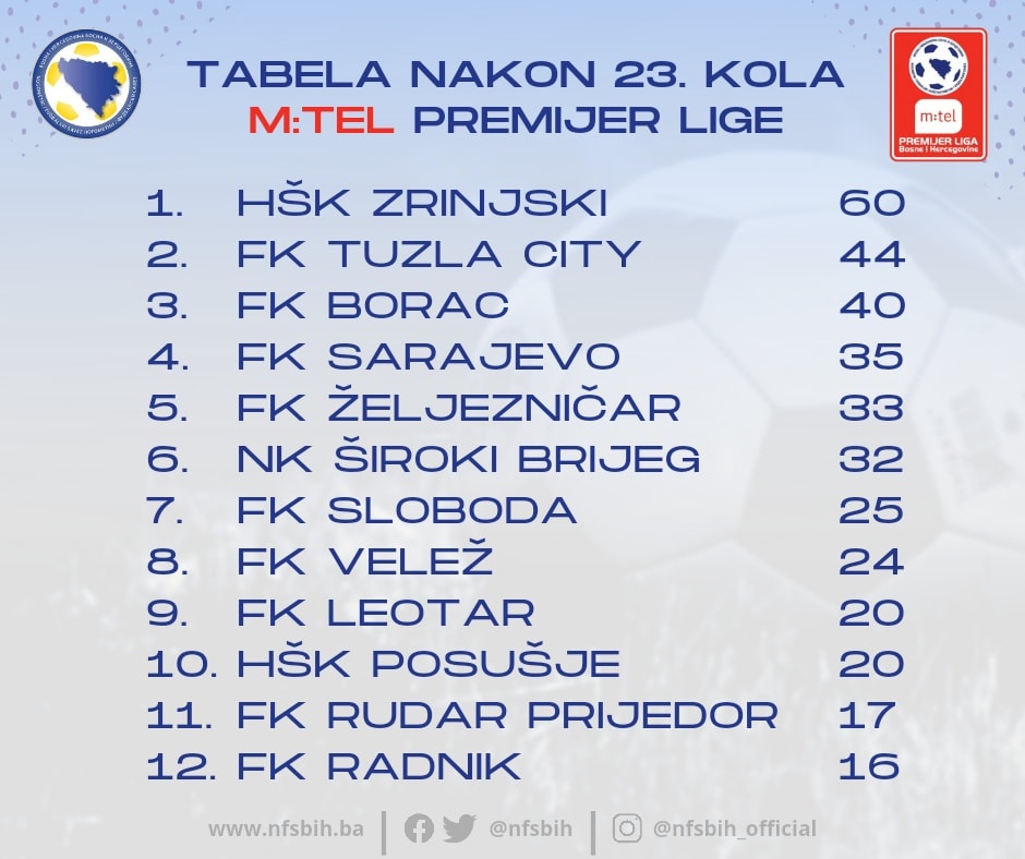 Odigrano 23. kolo Premijer lige BiH: Zrinjski sigurno korača ka tituli, Bilbija postavio rekord