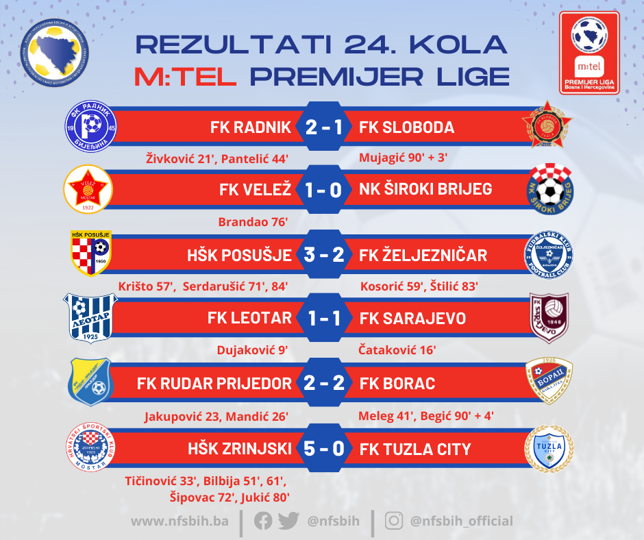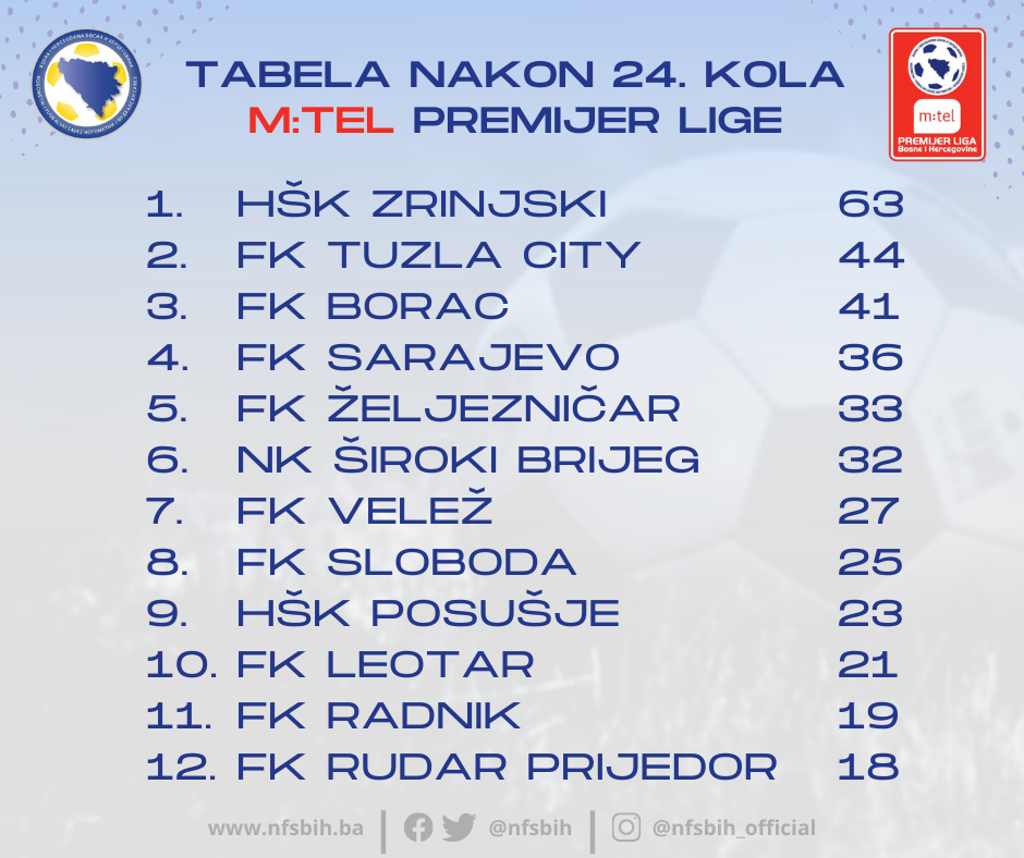 Jučer je kompletirano 24. kolo fudbalske m:tel Premijer lige BiH, a HŠK Zrinjski napravio je još jedan veliki korak ka tituli prvaka države.