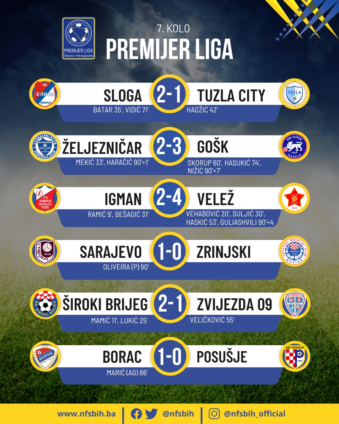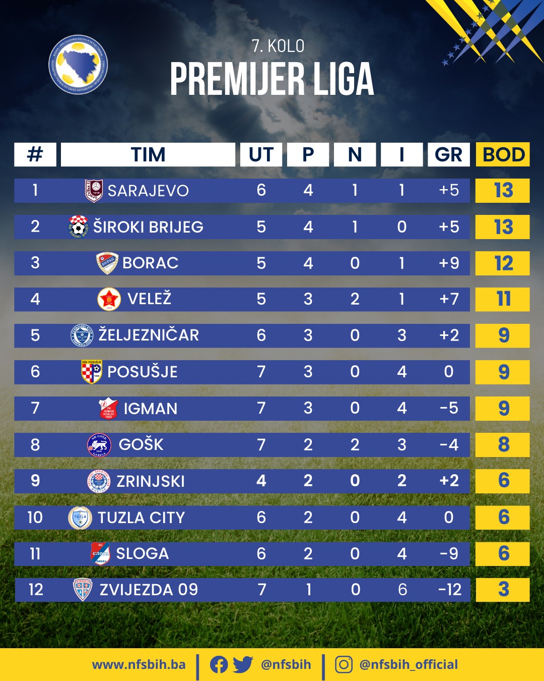 Tokom vikenda je kompletirano 7. kolo fudbalske Premijer lige BiH, a nakon ovog kola je došlo i do promjena na vrhu tabele.