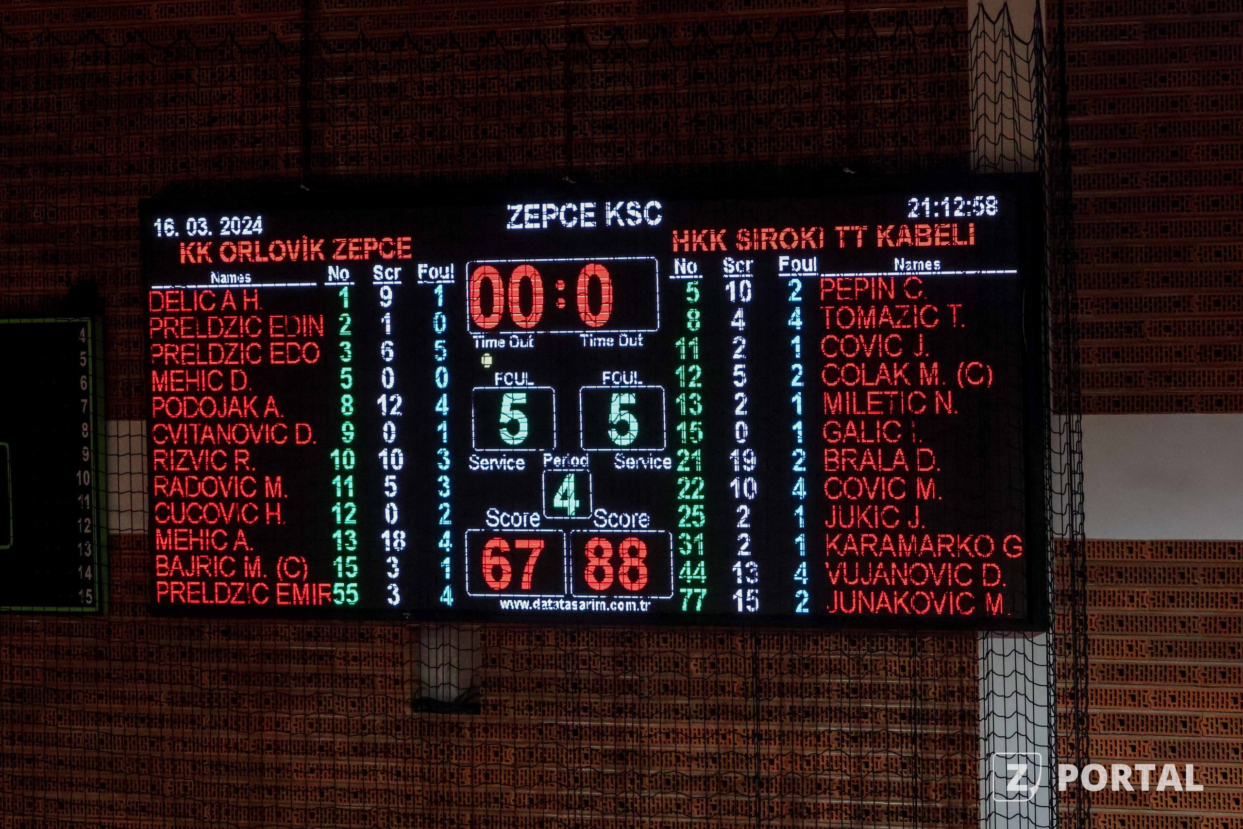 Domaći se u uvodu drugog poluvremena približavaju na -6 kada je na semaforu bilo 43:49, ali ubrzo ulaze u probleme kada je Emir Preldžić dobio tehničku grešku. Široki je ubrzo došao do +15 kada je bilo 47:62, ali i Orlovi hvataju ritam te značajno smanjuju zaostatak. Ovaj period igre je pripao Žepčacima sa 21:17, te se u posljednjih 10 minuta ulazi s rezultatom 59:66.