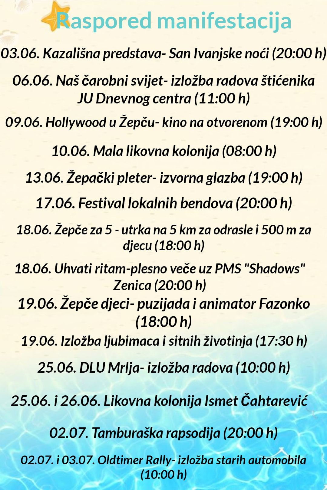 “Nastojali smo dotaknuti sve vidove umjetnosti i kulture i sve Vas pozivam da posjetite naše manifestacije” istaknuo je Ilić.