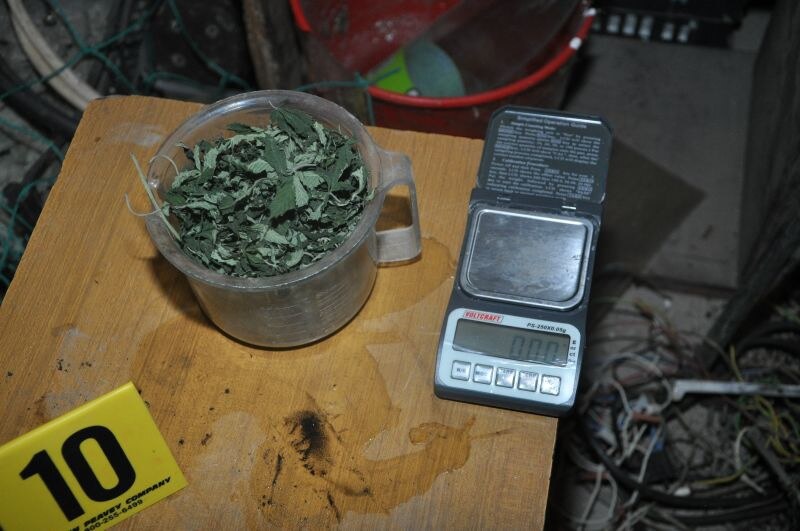 Prilikom pretresa, u prizemlju kuće je pronađena improvizovana laboratorija namijenjena za uzgajanje indijske konoplje sa opremljenom rasvjetom i sistemom zagrijavanja/hlađenja potrebna za kontrolisani uzgoj. U navedenoj laboratoriji, u boksovima za uzgoj indijske konoplje su pronađene 53 uzgojene stabljike u različitim fazama rasta visine od 10-120 cm koje svojim izgledom asociraju na indijsku konoplju, posađene u saksijama, te 42 sadnice u posudi sa vodom koje svojim izgledom asociraju na indijsku konoplju.