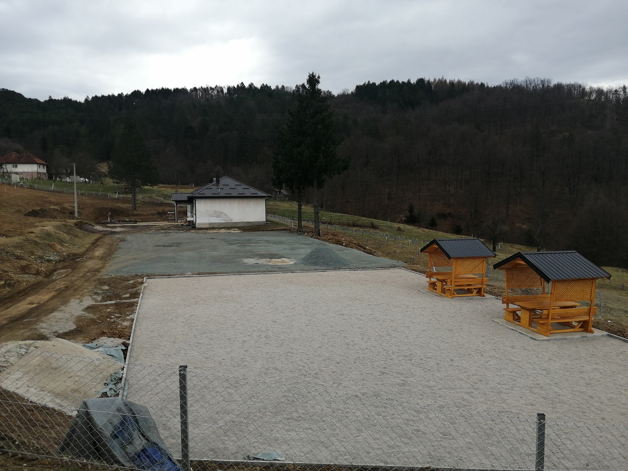 Prije tačno mjesec dana pisali smo o početku radova na realizaciji projekta, a od tada je već urađen veliki posao na pripremi terena, ravnanju, nasipu, urađena je kvalitetna drenaža, ograđen je teren, a u toku su i drugi radovi.