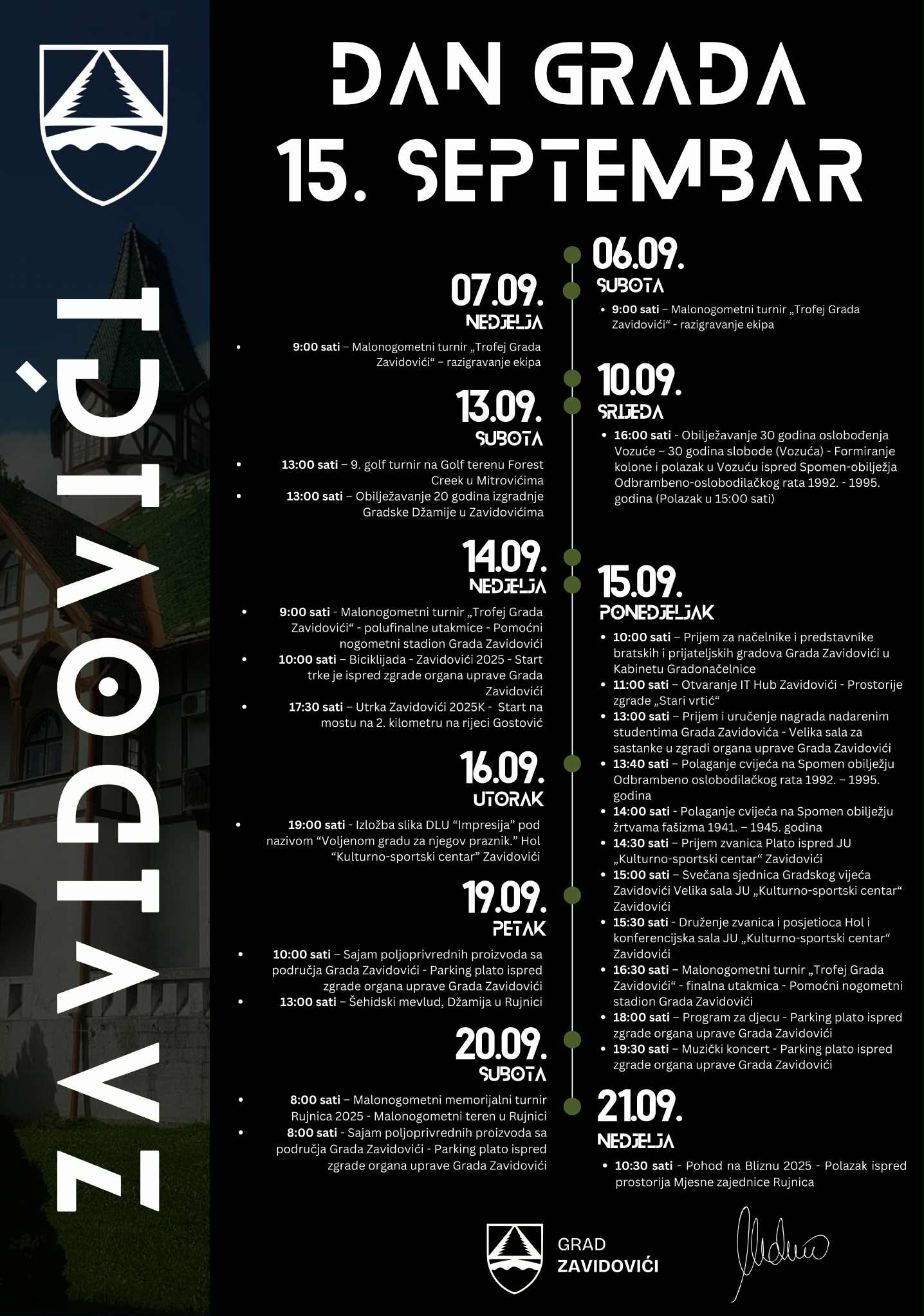 Gradonačelnica Zavidovića Erna-Merdić Smailhodžić večeras je objavila zvanični program obilježavanja 15. septembra – Dana Grada Zavidovići.