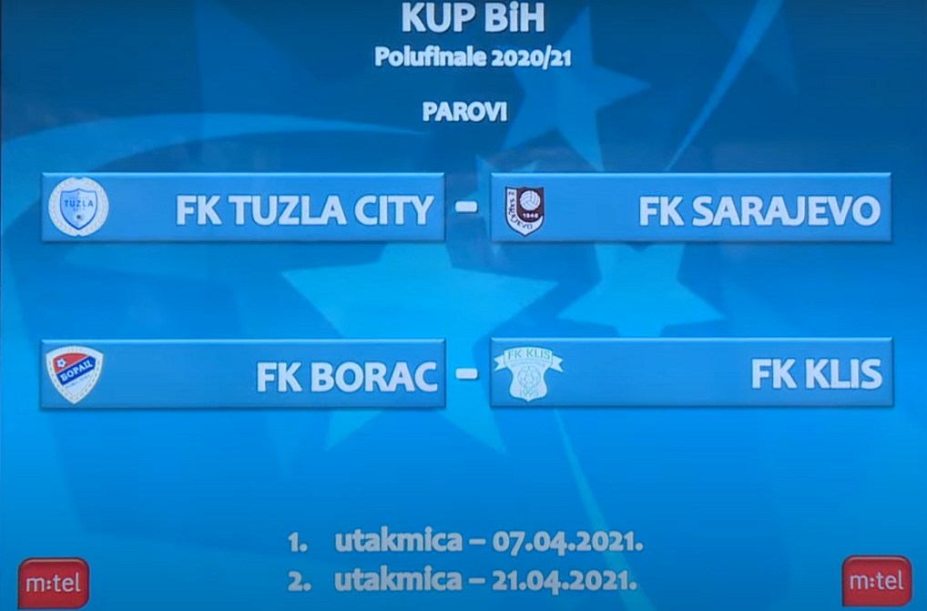 Danas je u prostorijama Nogometnog/Fudbalskog saveza Bosne i Hercegovine obavljen žrijeb parova polufinala Kupa BiH.