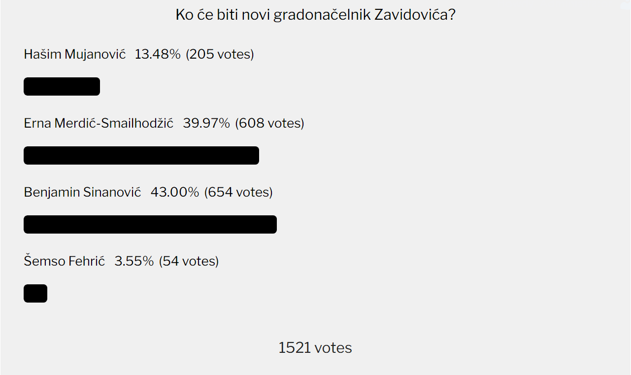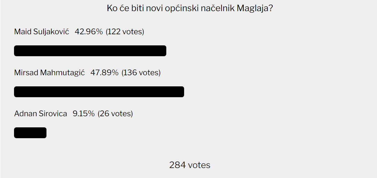 Naš portal je u prethodnom periodu na zahtjev čitatelja realizovao anonimne ankete za gradonačelnike, odnosno, općinske načelnike Zavidovića, Žepča i Maglaja.