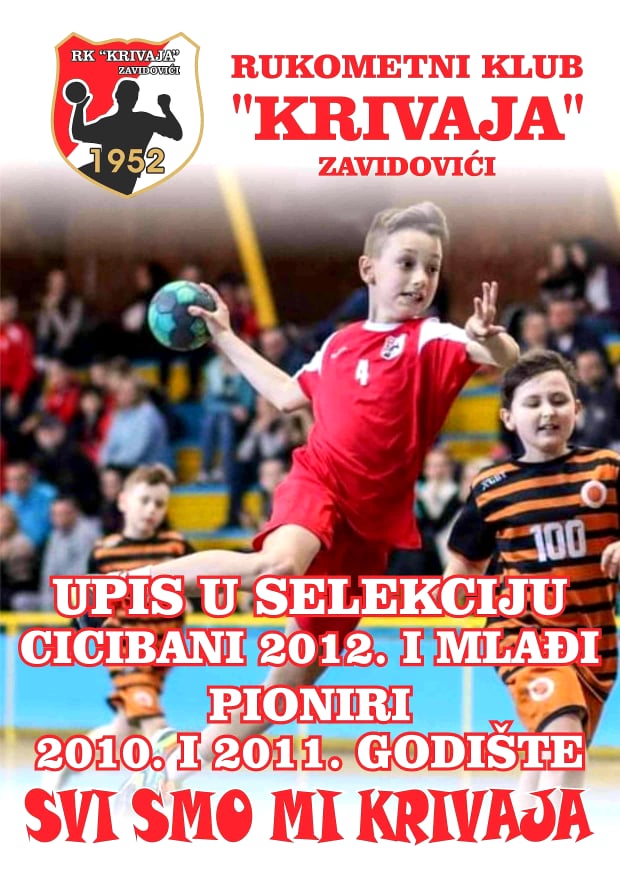 Škola rukometa RK Krivaja vrši upis dječaka u dvije uzrasne kategorije: Cicibani (2012. godište i mlađi) i Pioniri (2010. i 2011. godište).