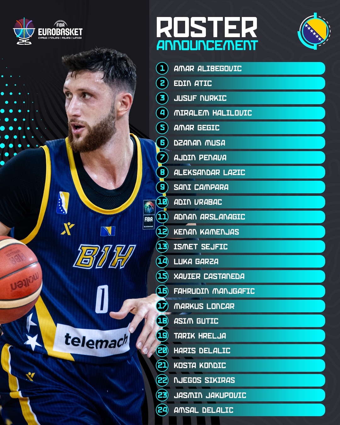 Šef stručnog štaba Zmajeva na spisak je uvrstio 24 košarkaša: Amar Alibegović, Edin Atić, Jusuf Nurkić, Miralem Halilović, Amar Gegić, Džanan Musa, Ajdin Penava, Aleksandar Lazić, Sani Čampara, Adin Vrabac, Adnan Arslanagić, Kenan Kamenjaš, Ismet Sejfić, Luka Garza, Xavier Castaneda, Fahrudin Manjgafić, Markus Lončar, Asim Gutić, Tarik Hrelja, Haris Delalić, Kosta Kondić, Njegoš Sikiraš, Jasmin Jakupović i Amsal Delalić.