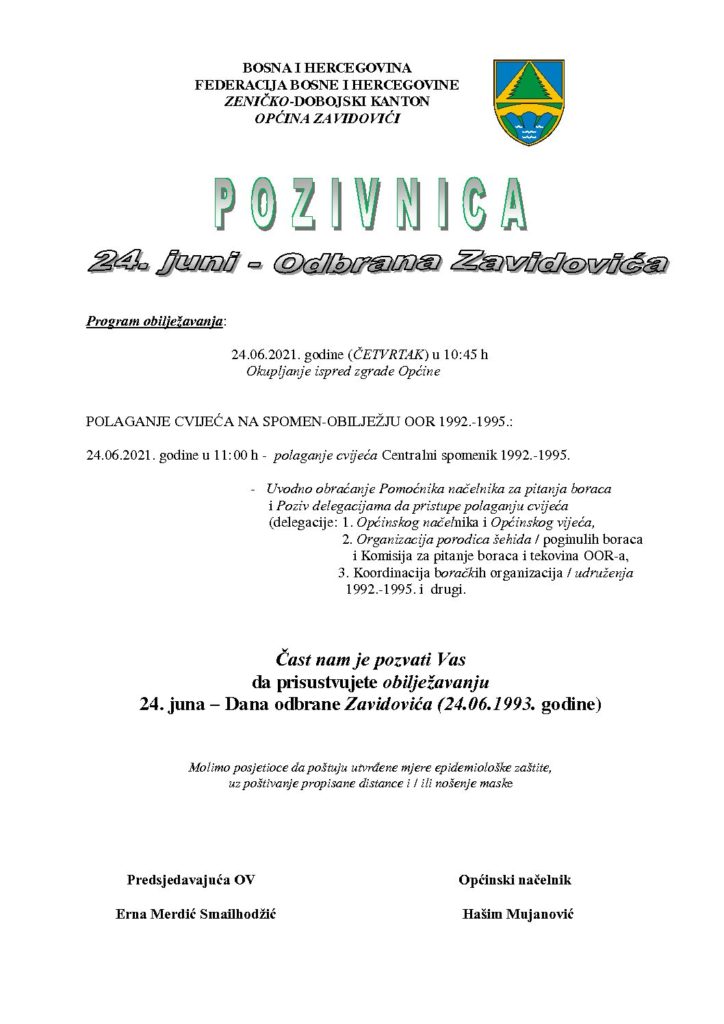 Sutra će u Zavidovićima biti obilježen 24. juni – Dan odbrane Zavidovića uz svečani program, a upućen je poziv i građanima za prisustvo.