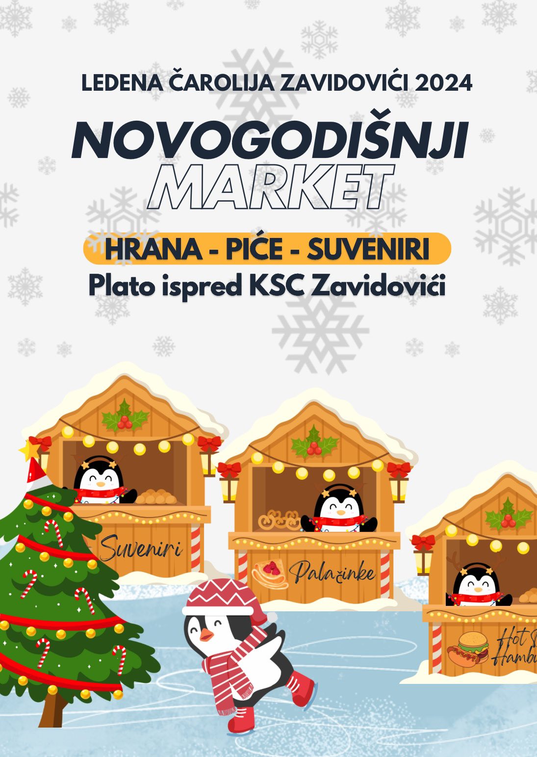U danima koji slijede pored klizališta za djecu će biti otvoren i praznični market koji nudi raznovrsne rukotvorine, praznične ukrase i specijalitete domaće kuhinje.