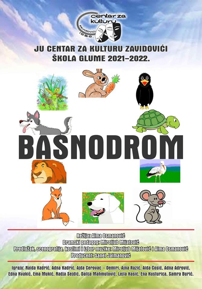U petak, 28. januara, članovi Škole glume će u JU “Centar za kulturu” Zavidovići premijerno odigrati predstavnu “Basnodrom”.