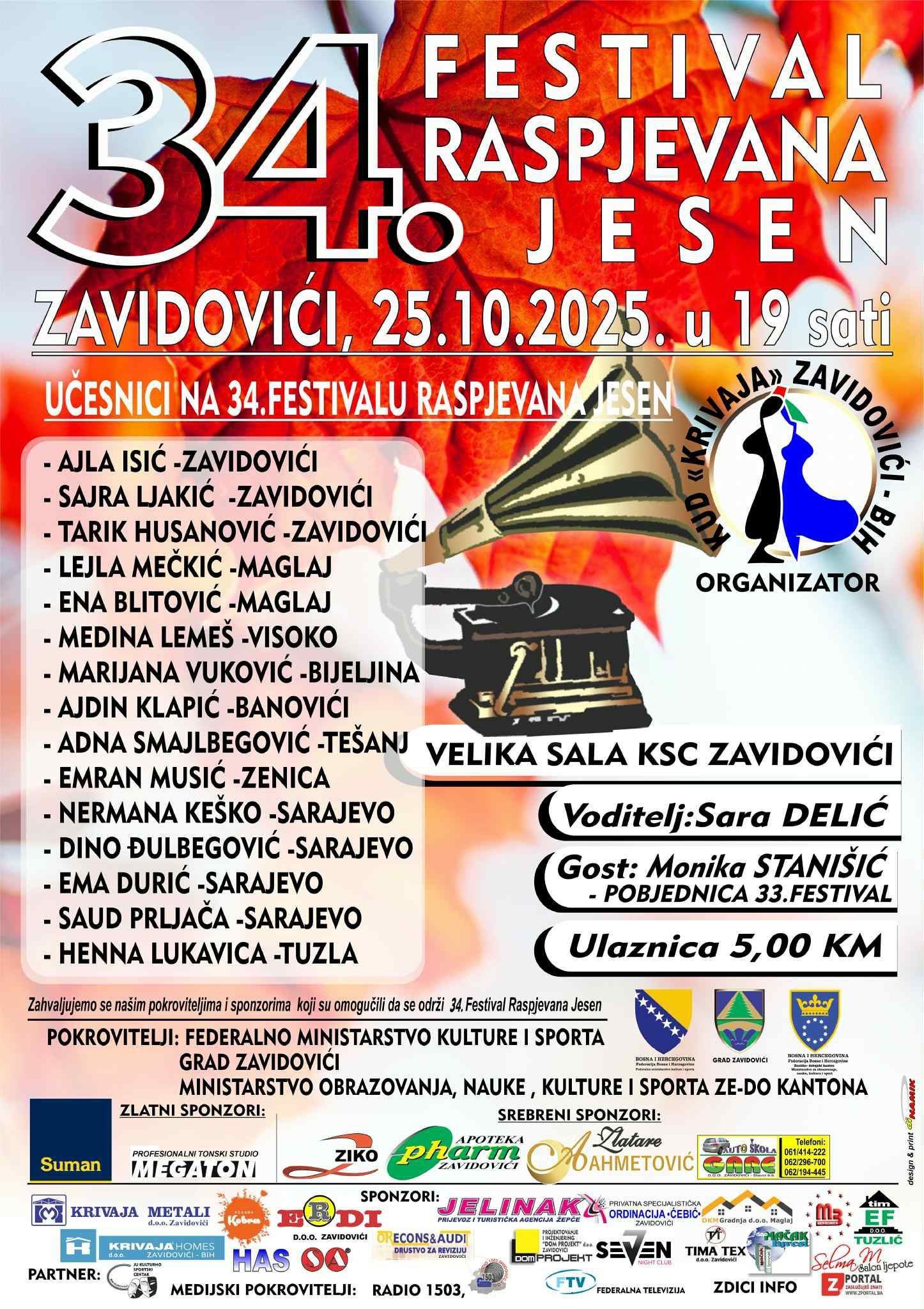 U subotu 25. oktobra 2025. godine u Zavidovićima će biti održano 34. izdanje tradicionalnog muzičkog festivala “Raspjevana jesen”.