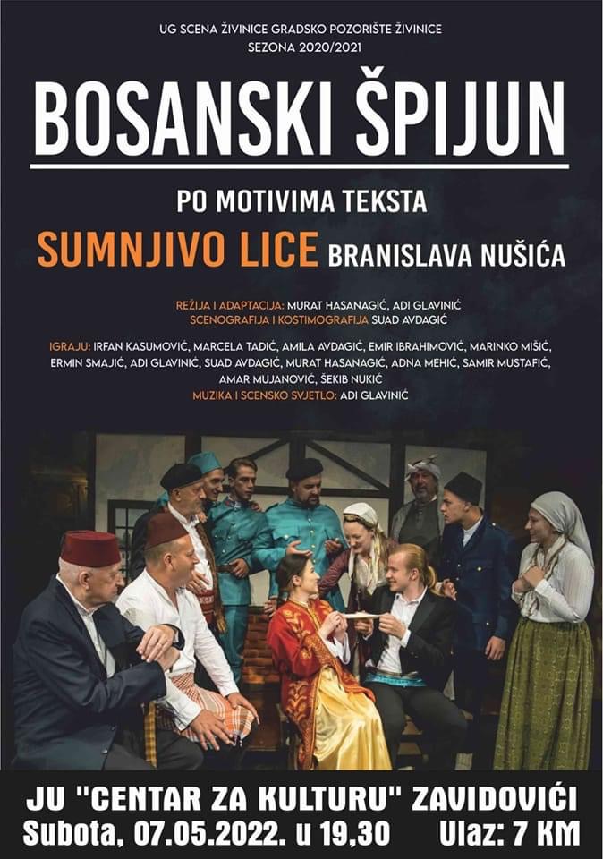 U subotu, 7. maja, u JU Centar za kulturu “Zavidovići” bit će odigrana predstava “Bosanski špijun”.