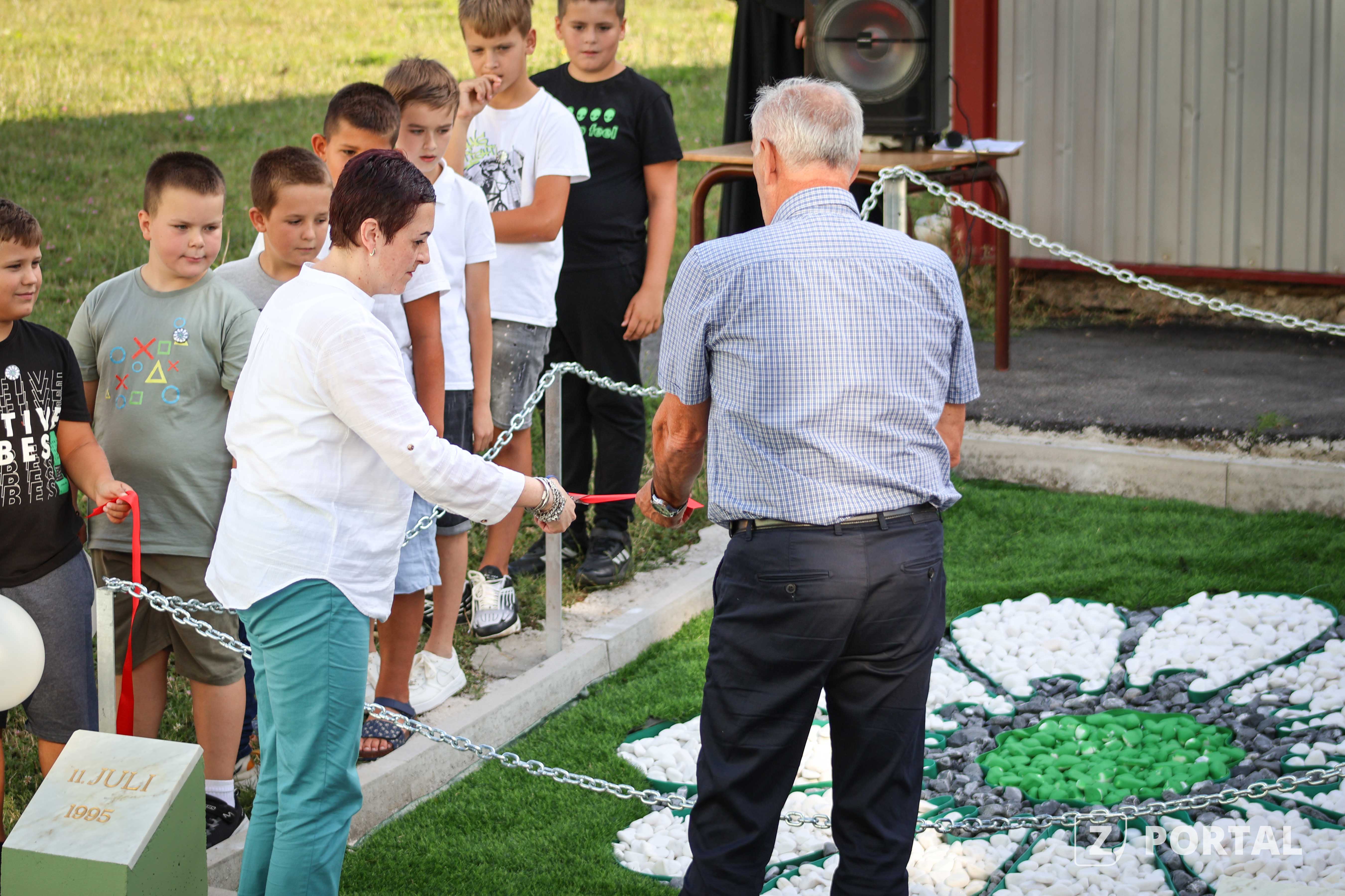 Iako izuzetno mladi, ali odgojeni i obrazovani od generacija odlučnih da se nikada više ne ponovi genocid, učenici trećeg razreda (odjeljenje A), zajedno sa svojom razrednom starješinom i roditeljima pripremili su postavku “Cvijet Srebrenice”, izrađenu od kamena u dvorištu škole.