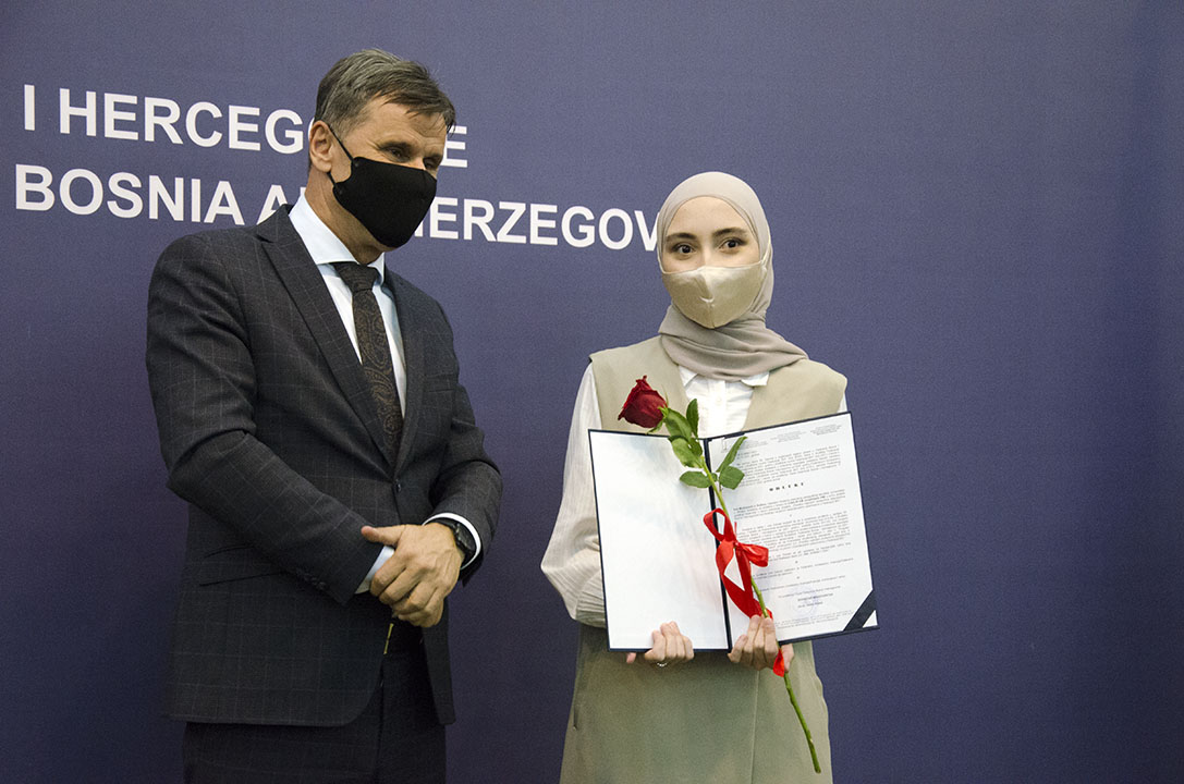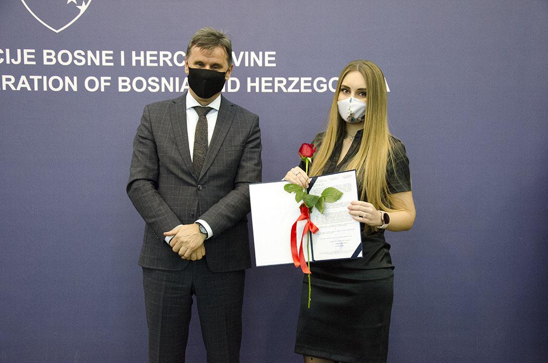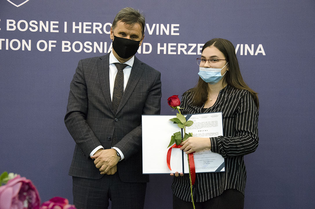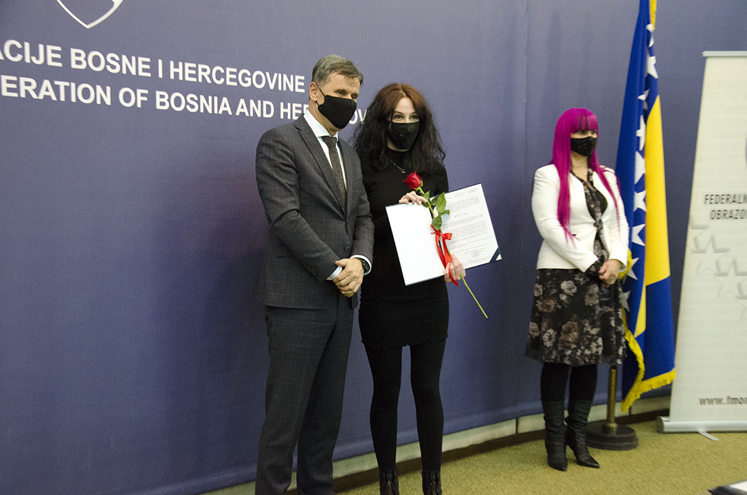 U organizaciji Federalnog ministarstva obrazovanja i nauke, u sjedištu Vlade Federacije BiH u Sarajevu, jučer je upriličena svečana dodjela priznanja i novčanih nagrada najboljim studentima u Federaciji BiH u akademskoj 2020/2021. godini.