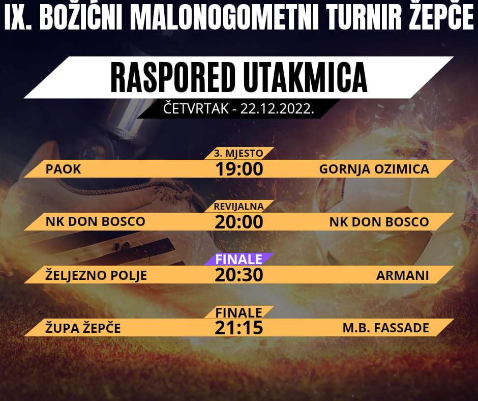 Večeras je na programu završna večer 9. Božićnog malonogometnog humanitarnog turnira Žepče 2022.
