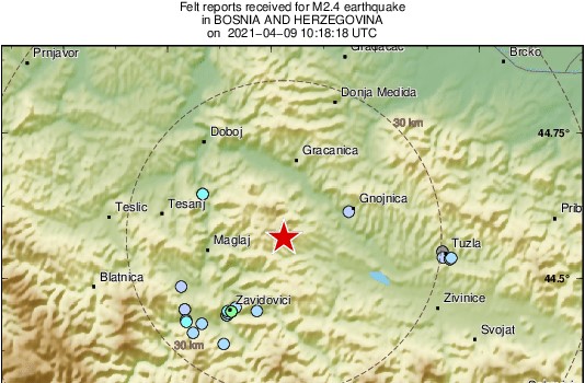 Oko 12:20 se osjetio snažan zemljotres. Epicentar je prema prvi informacijama bio 24 kilometra od Doboja. Zemljotres je trajao kratko,