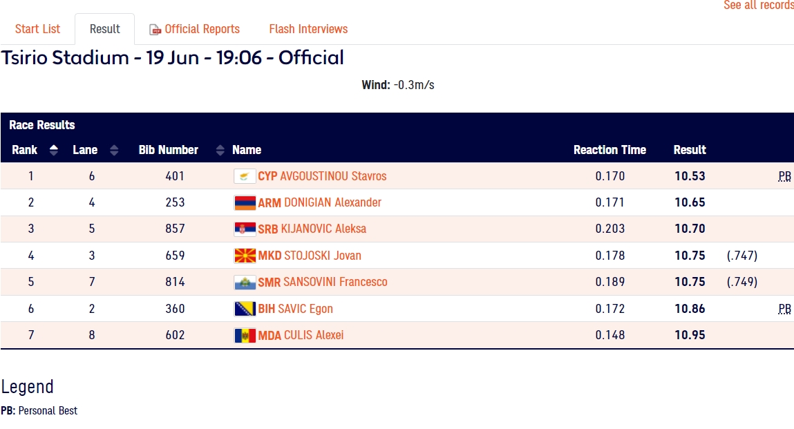 On je trčao u trci na 100 metara B grupe (jača grupa), gdje je zauzeo šesto mjesto s vremenom 10.86, što je njegov lični rekord.