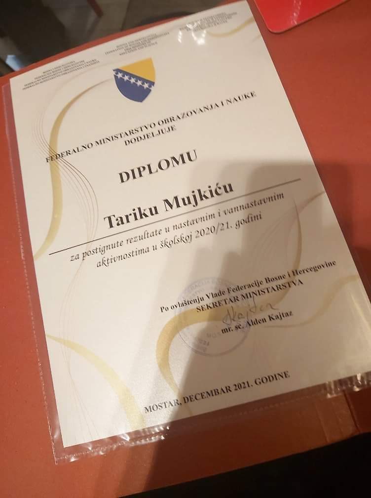 U organizaciji Federalnog ministarstva obrazovanja i nauke u Sarajevu je jučer, u utorak 14.12.2021. godine, održana svečana dodjela nagrada najboljim učenicima osnovnih i srednjih škola u Federaciji Bosne i Hercegovine u školskoj 2020/2021. godini.