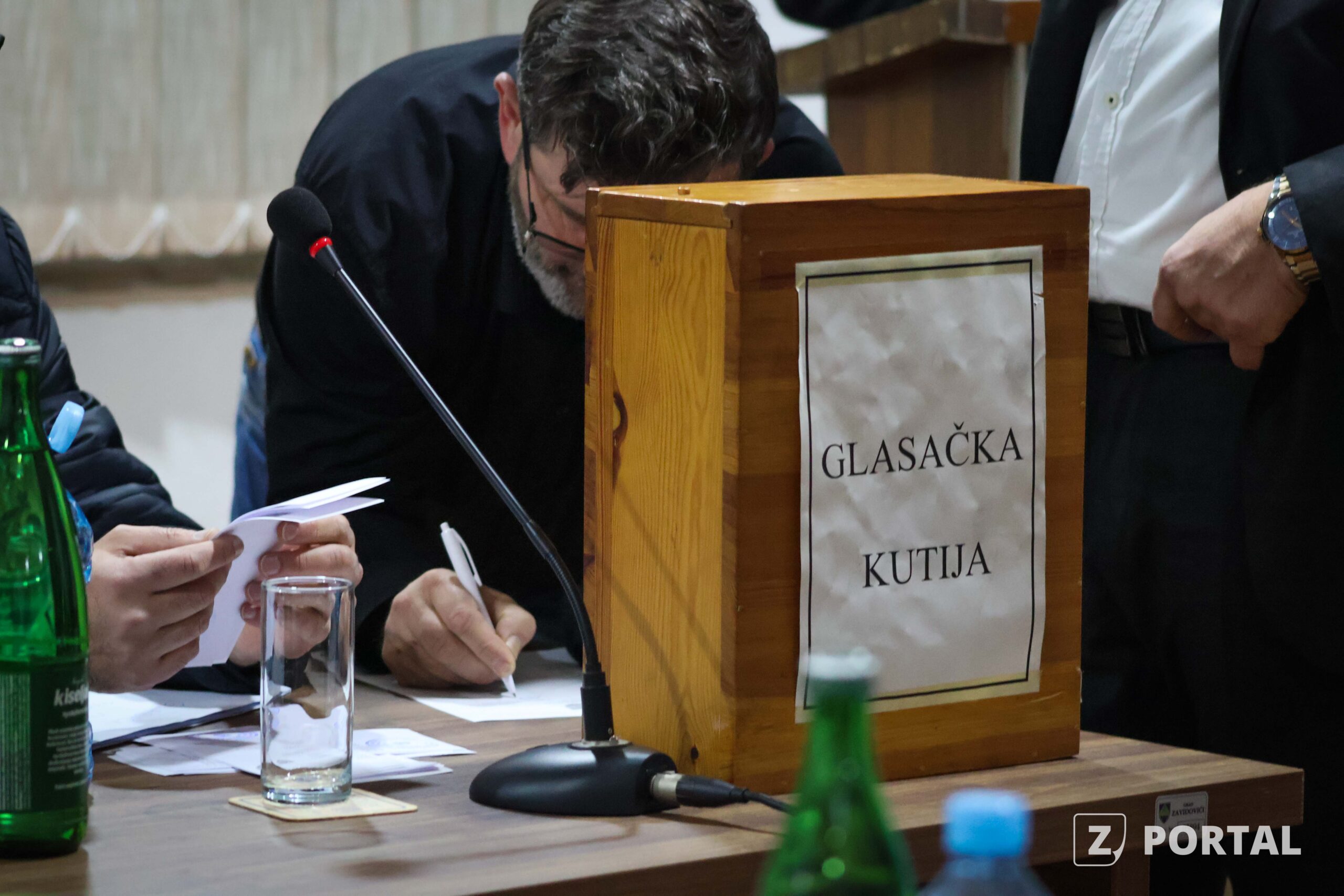 Nakon pauze od 15 minuta, pristupilo se 2. tački dnevnog reda i Izboru predsjedavajućeg Gradskog vijeća Zavidovići, a obzirom da nije bilo potrebne većine za prijedlog javnog glasanja (za što su glasali vijećnici SDP-a, SN i GS), shodno poslovniku istom se pristupilo tajnim glasanjem.
