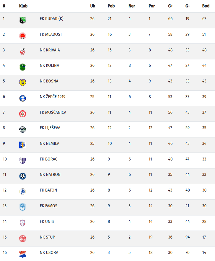 U Maglaju danas nije bilo pobjednika, a s dva pogotka u prvom poluvremenu Natron i Kolina su remizirali rezultatom 1:1. Gosti su poveli golom Kerima Šehića, dok je za domaće izjednačio Ševkija Resić iz penala, za jedini bod domaćih ekipa u današnjim utakmicama.