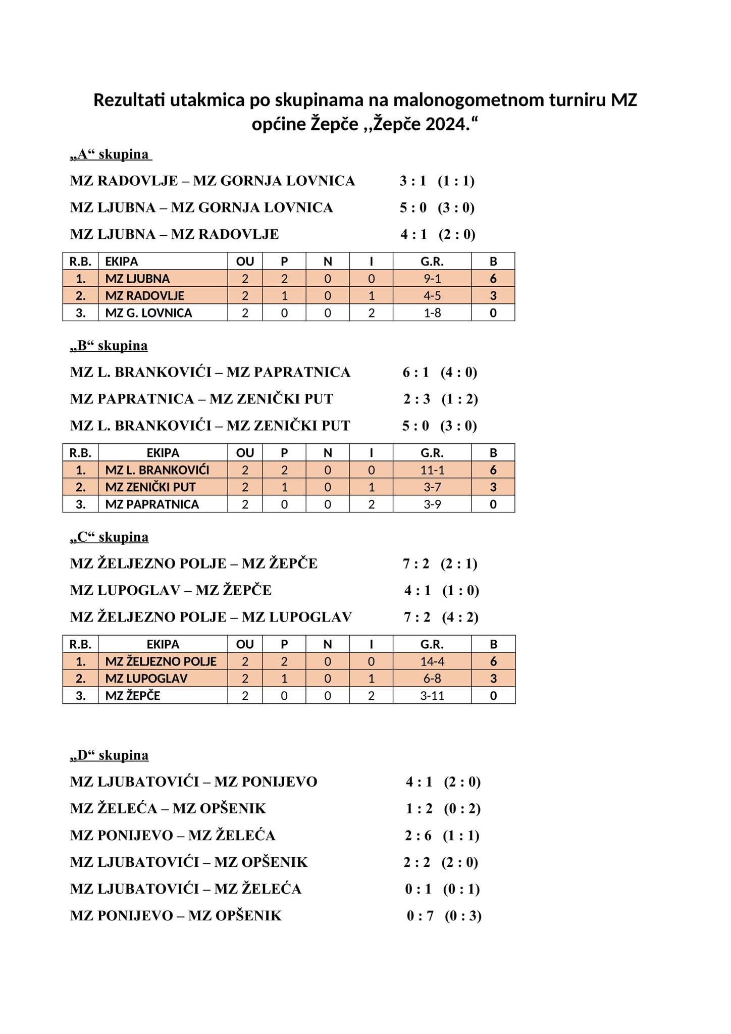 Sinoć su odigrane posljednje utakmice grupne faze na 13. izdanju Turnira mjesnih zajednica općine Žepče 2024.