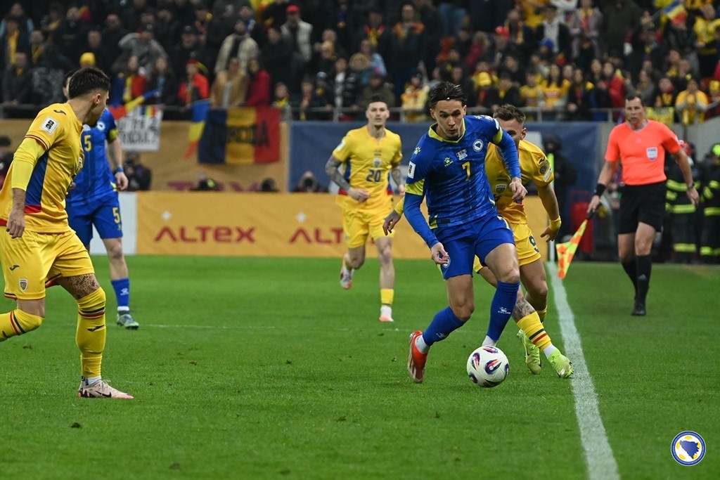 Večeras je u Bukureštu odigran susret 1. kola kvalifikacija za Svjetsko prvenstvo 2026. godine između Rumunije i Bosne i Hercegovine, a pobijedio je bh. tim rezultatom 0:1.